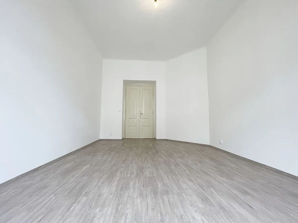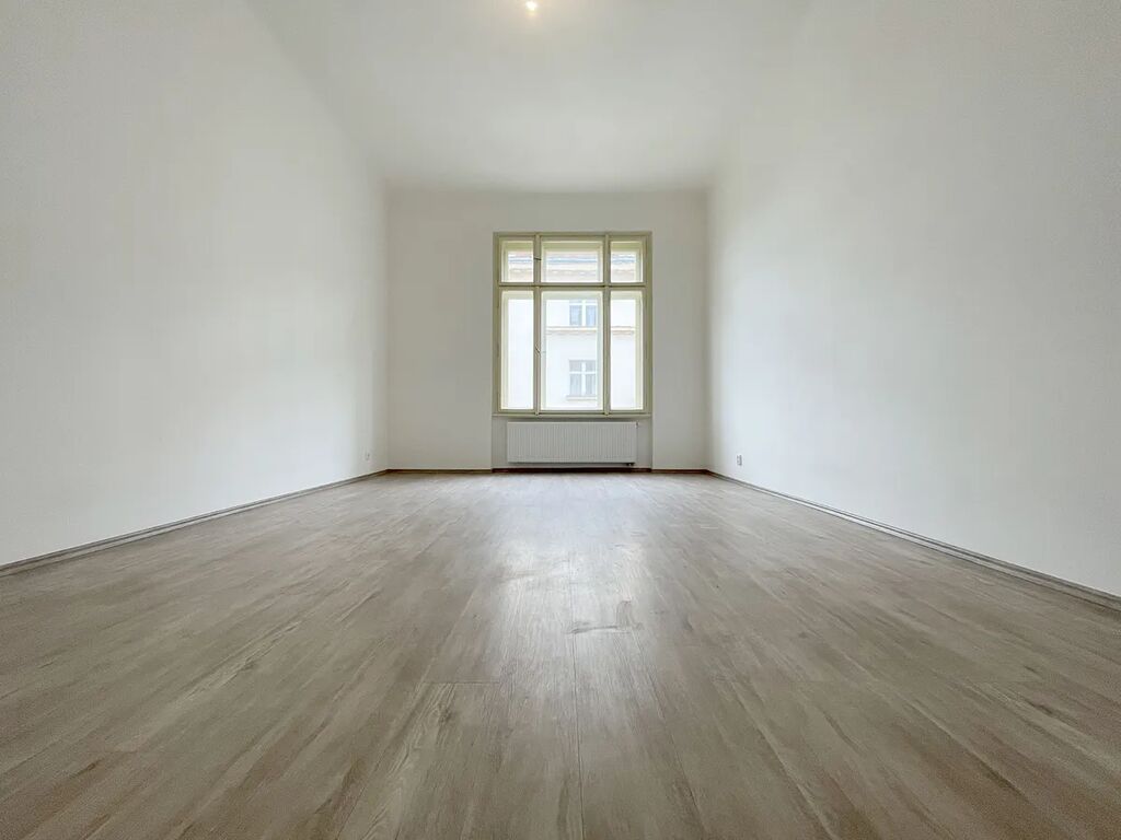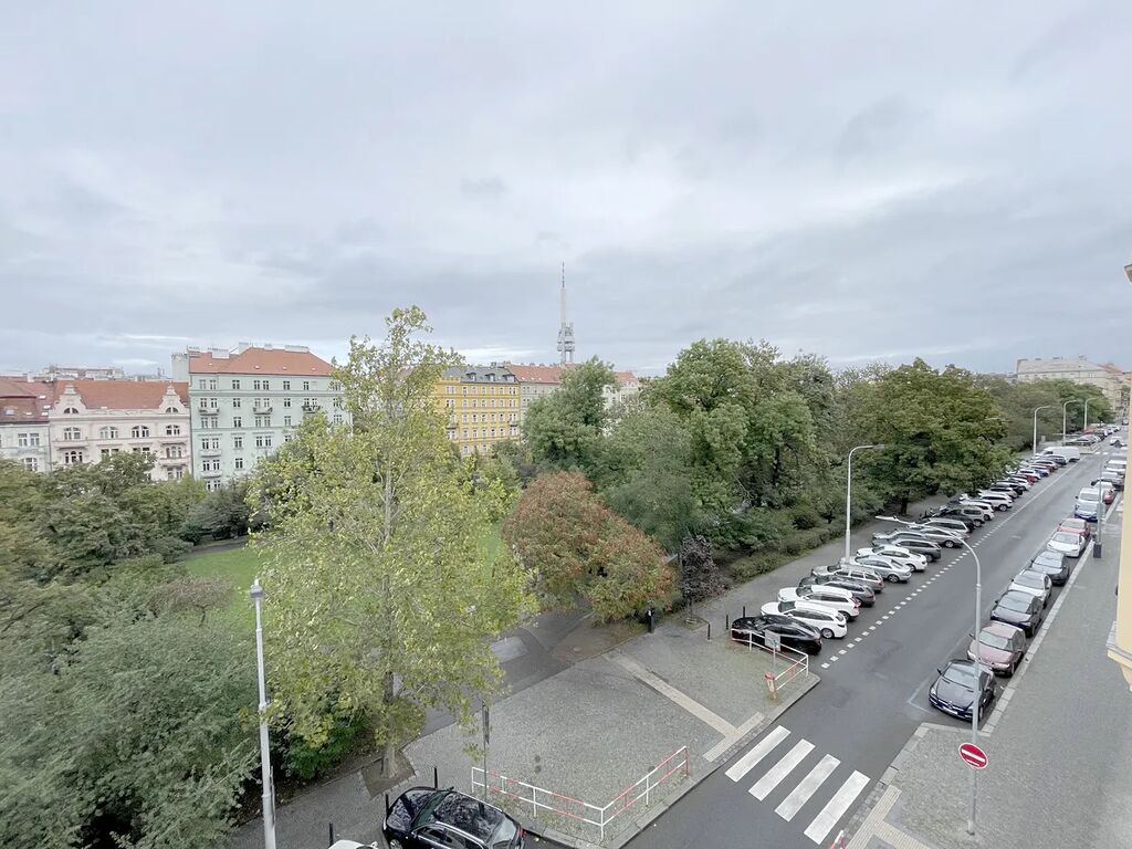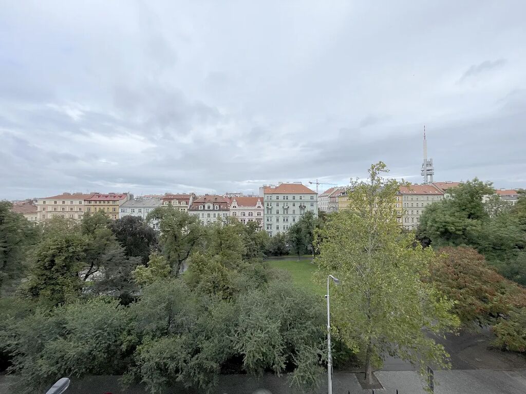 Byt je nově po kompletní rekonstrukci s výhledem do zeleně, nachází se v těsné blízkosti Sadů Svatopluka Čecha, Riegrových sadů a v 3minutové docházkové vzdálenosti k metru A Jiřího z Poděbrad; skládá se z 2 průchozích pokojů, 1 neprůchozího pokoje a kuchyně samostatně přístupné z předsíně. Plochy místností jsou: pokoje 23,79 m2, 26,32 m2 a 22,66 m2, kuchyně 15,67 m2, předsíň 7,66 m2, koupelna 2,51 m2, WC 1,07 m2, komora 1,87 m2 a balkón 2,29 m2.