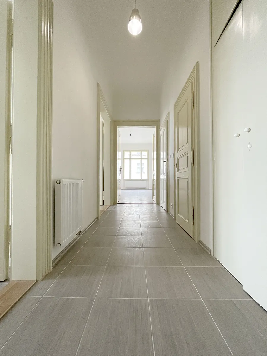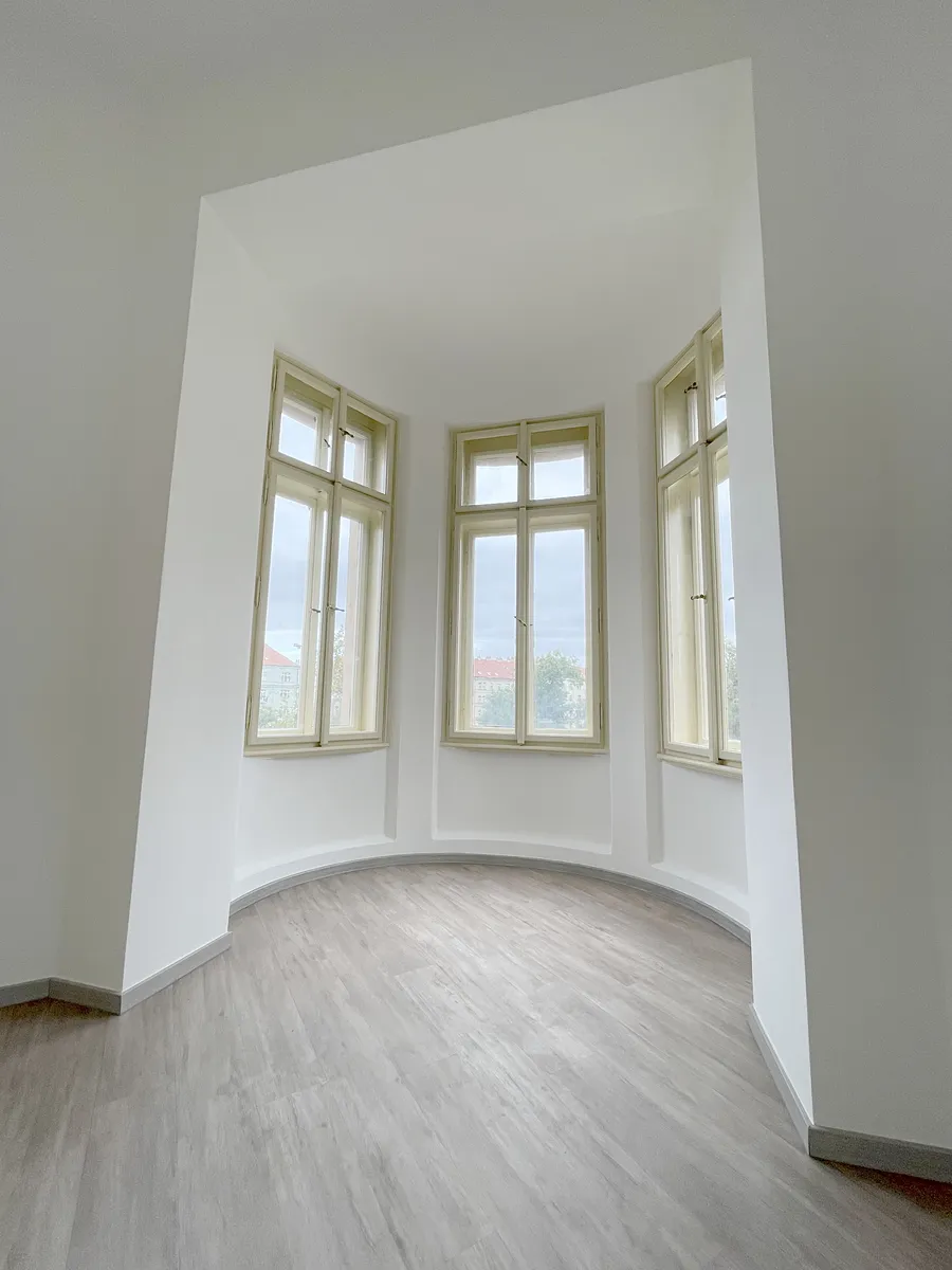 Nabízíme Vám pronájem nezařízeného, prostorného a světlého bytu 3+1 s balkónem o celkové ploše 104 m2 ve 3. patře zděného čtyřpatrového domu s výtahem.