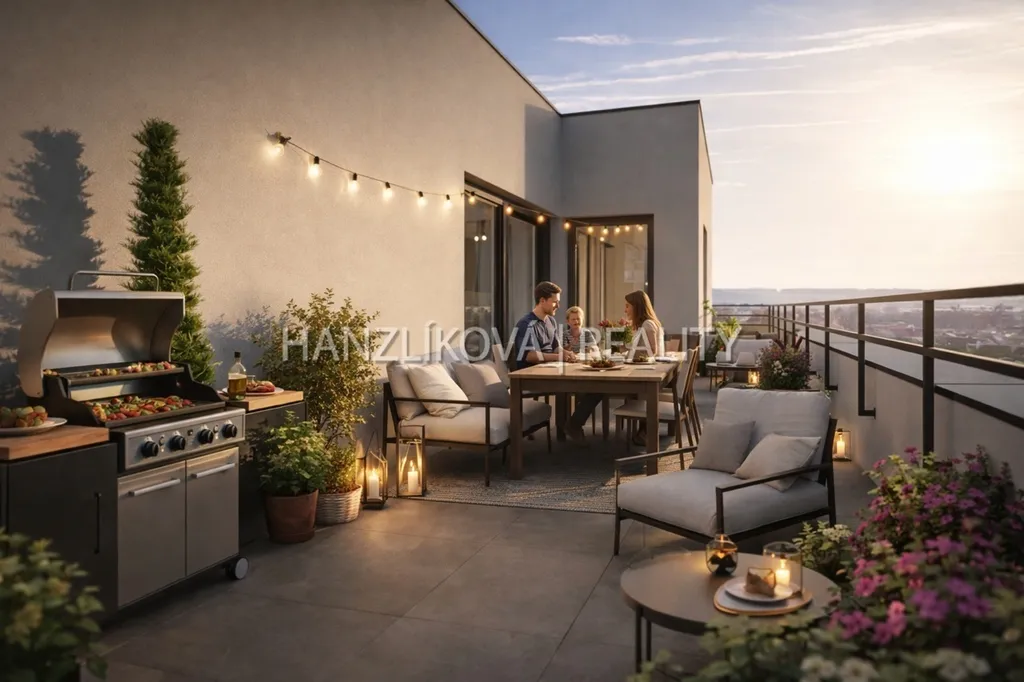 Hledáte prostor pro rodinu, ale nechcete řešit údržbu domu a zahrady? Tento výjimečný byt o dispozici 6+kk a ploše 152 m² nabízí vše, co od rodinného domu očekáváte – prostor, soukromí i venkovní zázemí – a navíc komfort moderní novostavby.