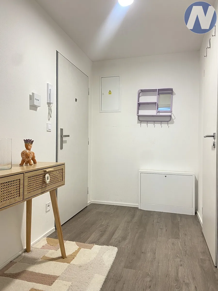 Vybaven je rohovou kuchyňskou linkou s ledničkou, varnou deskou a elektrickou troubou. Hlavní obytná místnost je velmi prostorná a díky dvěma francouzským oknům také velmi světlá. Všechna okna bytu jsou osazena žaluziemi. V koupelně je umyvadlo, velký sprchový kout a toaleta. Chodba bytu je prostorná. V celém bytě je centrální podlahové vytápění.