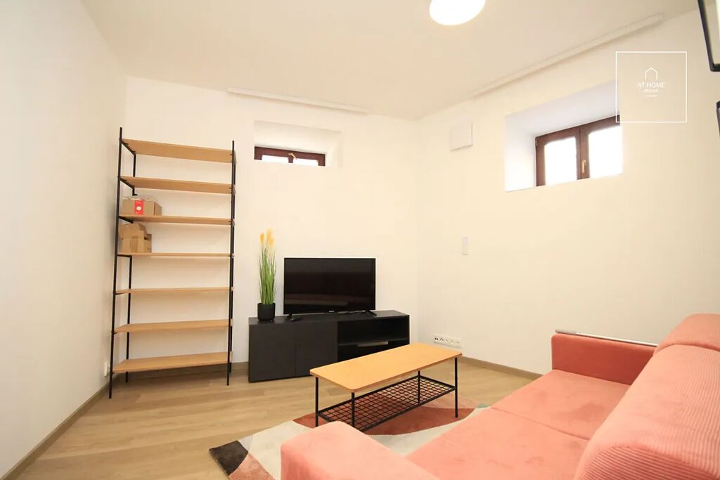 Velice hezký, úplně nový, zařízený atelier v suterénu právě zrekonstruovaného domu, Praha 3 - Žižkov, ulice Milíčova. 33m2: pokoj s rozkládacím gaučem, samostatně plně vybavený kuchyňský kout. Lednice, trouba, myčka, indukční varná deska. Odemykání domu i bytu na kód, Internet Vodafone 1Gb v ceně nájmu (online regulace topení), podlahové topení, elektrický kotel, rekuperace. K dispozici sklep 1,3m2. V okolí veškerá občanská vybavenost - supermarket, lékař, bary, restaurace a kavárny. Výborná dopravní dostupnost TRAM linky 9,15,26. V docházkové vzdálenosti Vítkov, Parukářka. Poplatky 4.000,-Kč. Energetický štítek G (údaj bude aktualizován).