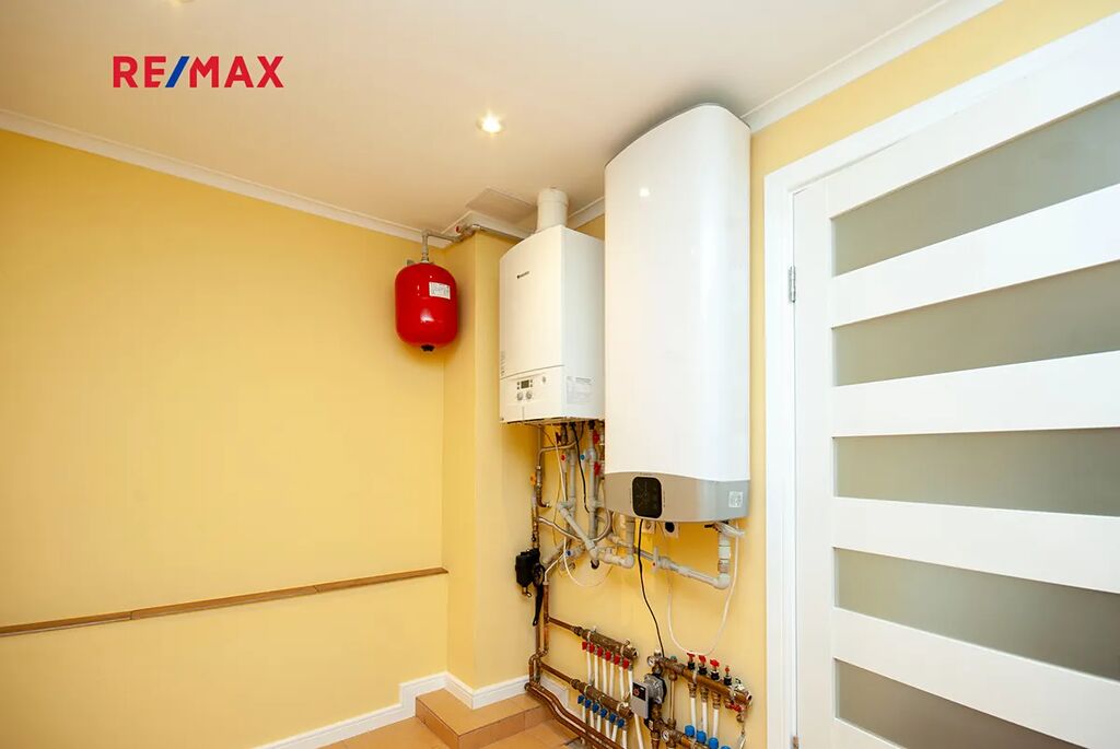 Dům je napojen na všechny inženýrské sítě, vytápění je řešeno plynovým kotlem – v přízemí je podlahové topení, v patře radiátory. V obývací části je příprava na krbová kamna a v domě je připravena infrastruktura pro instalaci tepelného čerpadla. V patře jsou nainstalovány dvě klimatizační jednotky, které zajistí komfort i během horkých letních dní.