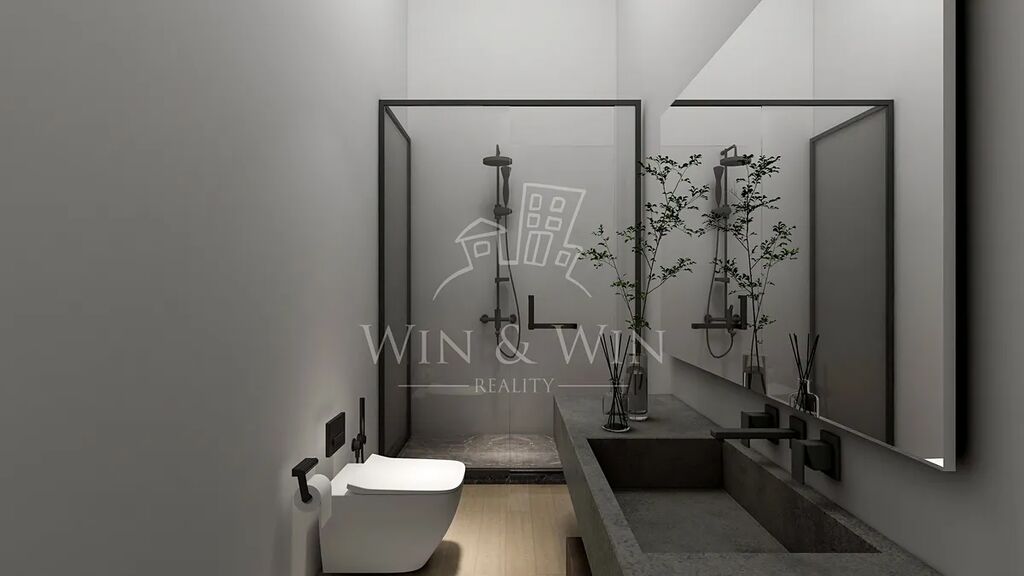 Vizualizace ukazuje již předběžnou podobu kompletní rekonstrukce jedné bytové jednotky. V dvorní přístavbě bazén a jacuzzi.