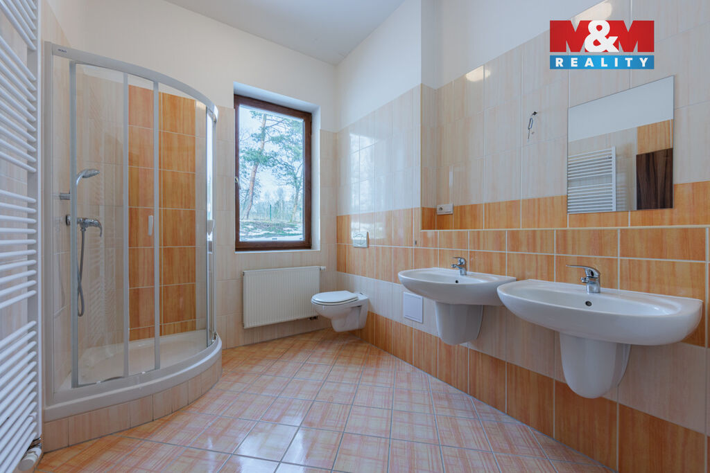 Hledáte dům, který nabízí svou dispozicí pohodové bydlení nebo zázemí firmy, navíc kousek do lázeňského města Karlovy Vary? Dům vytápěný tepelným čerpadlem je dvoupodlažní, disponuje velkou halou, jídelnou, galerií, terasou a velkými pokoji s vlastním sociálním zařízením. Navíc je zde možnost vybudovat krb, který Vám v zimních měsících dotvoří útulnou atmosféru. K domu náleží zahrada o rozloze 1.111 m2. Zastavěná plocha domu je 259 m2. V současné době jsou v hale kamna na pelety. Střecha domu je pokryta falcovaným plechem zn. BLACHDOM PLUS, fasáda opláštěná deskami zn. CETRIS, okna jsou vybavena izolačními trojskly. Veškerá občanská vybavenost je v Nové Roli (3 km) nebo K. Varech (5 km). Autobusová zastávka meziměstské dopravy je vzdálená cca 200 m. Pokud Vás tato nabídka zaujala, neváhejte si domluvit termín prohlídky. S případným financování Vám pomůže MM