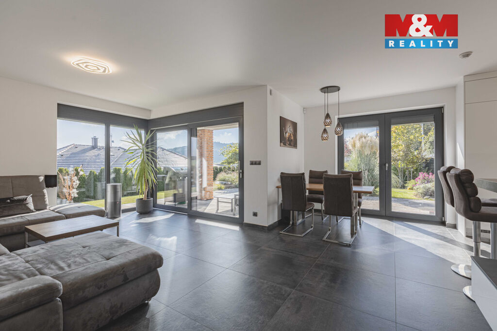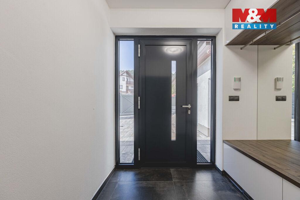Nabízíme krásný, nadstandardně vybavený rodinný dům s vytápěnou dvougaráží, kolaudovaný v roce 2020, situovaný na okraji klidné obce Újezdec. Novostavba zaujme moderními technologiemi a promyšleným dispozičním řešením 4+kk + techn. místnost. Příjemně vás potěší koupelna s vestavěnou finskou saunou, centrální vysavač, zabezpečovací a kamerový systém. Všechna okna jsou vybavena trojskly a venkovními žaluziemi na el. ovládání, což zaručuje ideální tepelný komfort i soukromí. Veškeré technologie domu lze pohodlně ovládat na dálku přes mobilní aplikace. Součástí je i systém pro mineralizaci vody, zajišťující její vysokou kvalitu. Vytápění zajišťuje tepelné čerpadlo s podlahovým topením a možností individuální regulace. Z prostorného obývacího pokoje je přímý vstup na terasu s úchvatnými výhledy do přírody. Okrasná zahrada je vybavena zavlažovacím systémem. Nemovitost představuje komfortní a technologicky vyspělé bydlení pro rodinu, která hledá klid a moderní styl života v dosahu Klatov.