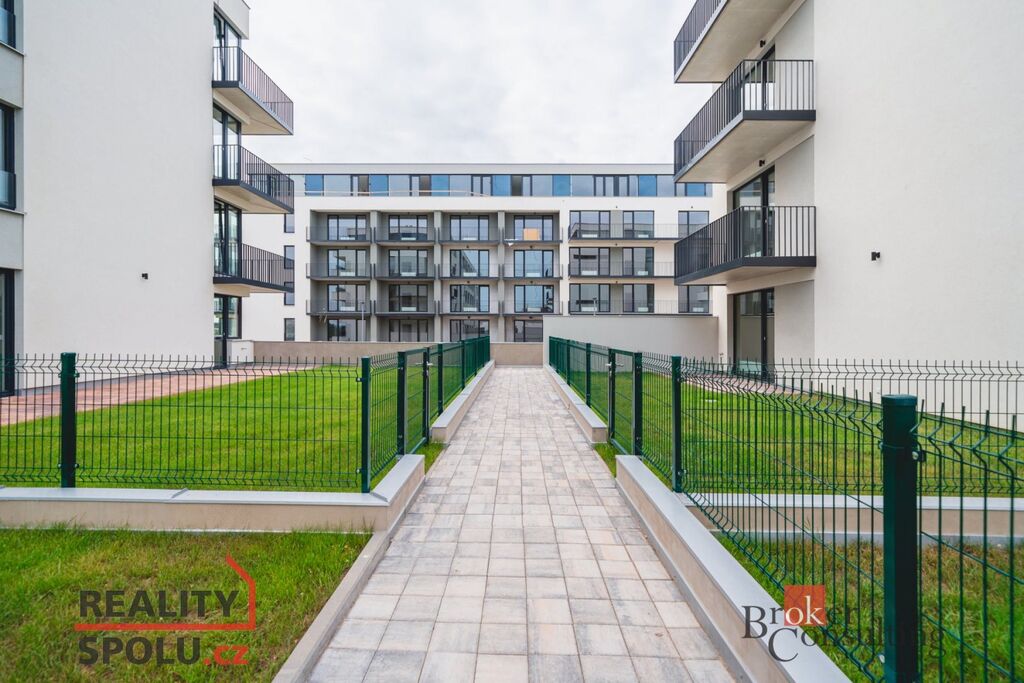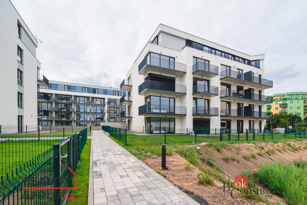 Byt se nachází v 1. podlaží s přímým přístupem na vlastní prostornou předzahrádku o výměře 59 m², ideální pro relaxaci či domácí mazlíčky. K bytu náleží také garážové parkovací stání v 1.PP a ve stejném patře sklep (2,5m2), oboje je ihned u vstupu k výtahům.