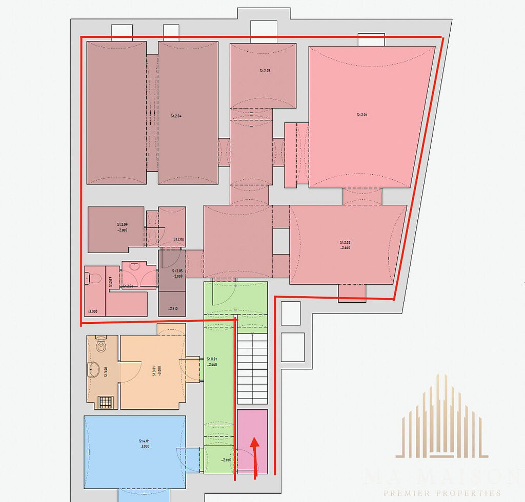 Tento prostor se nachází v prvním podzemním podlaží a je ve stavu shell&core. Díky tomu nabízí neomezený potenciál pro vaše podnikání. Prostor je členěn do několika místností o celkové podlahové ploše 105 m² - viz půdorys. Do prostoru je zavedena plynová přípojka. Systém vytápění je čistě na vaší volbě - všechny možnosti jsou přijatelné (plynový kotel, elektrokotel, přímotopy, tepelné čerpadlo a pod). Je zde rovněž příprava na vzduchotechniku a zajištěn přísun čerstvého vzduchu. Na adrese je možnost zřízení sídla společnosti.