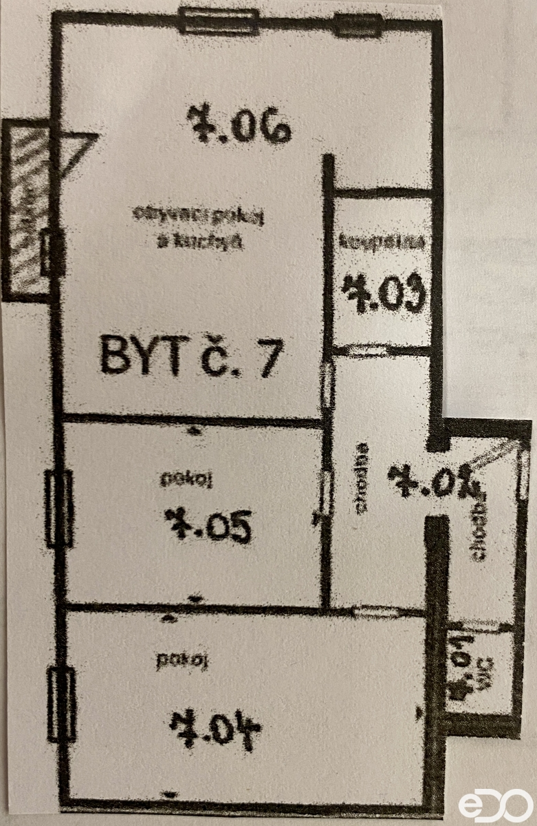Nabízíme Vám k prodeji poslední volný byt v bytovém domě o 11 bytových jednotkách. Jedná se o byt 3+kk s balkónem, nacházející se ve zvýšeném přízemí domu, jehož orientace je na JZ s výhledem do zeleně. Tento největší byt v domě, o velikosti 76 m2, nabízí komfortní bydlení pro celou rodinu. Nadstandardně velký obývací pokoj umožní majiteli nenákladné zvětšení kuchyňského koutu dle jeho vlastního vkusu. Rovněž výjimečná velikost jedné z ložnic nabízí možnost pro vytvoření šatny či řešení úložného prostoru pomocí dostatečného množství skříní. Tento byt z jedné strany sousedí se společnou sušárnou, což poskytuje více klidu i soukromí. K bytu náleží sklepní kóje a to největší parkovací místo na parkovišti přímo u domu.