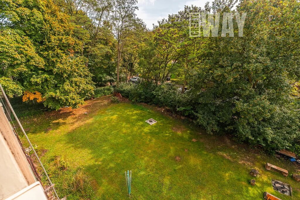 K bytu náleží oplocená soukromá zahrada, kde na 2.262 zatravněných m2 najdete vzrostlé stromy, posezení u ohniště i sušáky na prádlo. Zahrada slouží výhradně obyvatelům domu, takže pokud chcete zkombinovat výhody bydlení v bytě s možností pobývat ve vlastní zeleni, toto je ta správná nabídka.