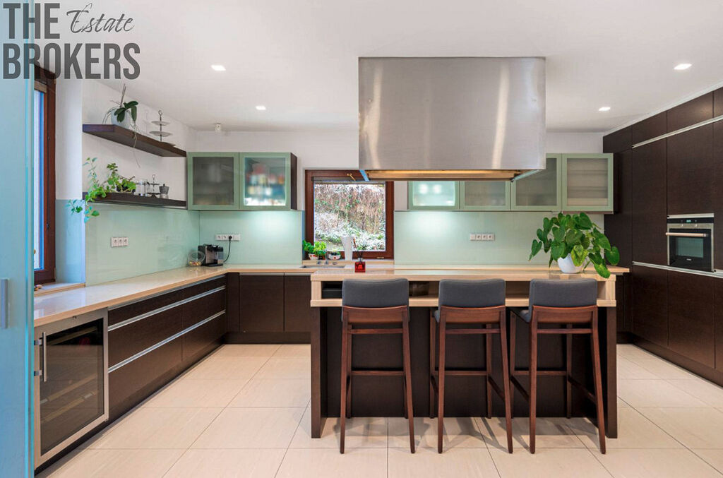 Dům má 6 koupelen, dětskou hernu, pracovnu, malý byt se samostatným vchodem nebo fitness a vinný sklípek. K odpočinku využijete venkovní bazén se slanou vodou a vybudovat zde můžete i saunu.