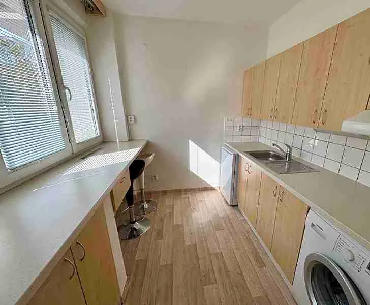 Exkluzivně nabízím k pronájmu byt o velikosti 1+1 (38 m2) ve Zlíně na ulici Zarámí v cihlovém bytovém domě. Byt se nachází ve 2. NP z celkových 4, bez výtahu. Dispozice bytu: obývací pokoj, kuchyň s jídelním koutem, koupelna, WC, lodžie a vstupní chodba. V bytě je kuchyňská linka, kde se nachází lednice. Součástí kuchyňské linky je i zabudovaná pračka s předním plněním. Vaření je možné na přenosné varné desce. V koupelně je vana se sprchovou baterií, umyvadlo s vodovodní baterií, skříňka pod umyvadlem, zrcadlo s osvětlením a radiátor.