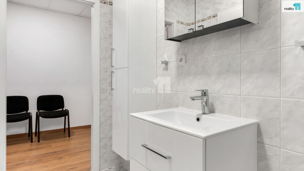 Pronájem nezařízených kancelářských prostor v Praze Vršovicích o velikosti 50 m². Prostory se nachází v přízemí zrekonstruovaného domu a jejich dispozice zahrnuje vstupní předsíň, chodbu, prostornou kancelář (28,5 m²), nová kuchyňka (zatím není na fotkách, bude se teprve sestavovat) , koupelnu, sprchový kout a samostatnou toaletu. V oknech jsou bezpečnostní skla.