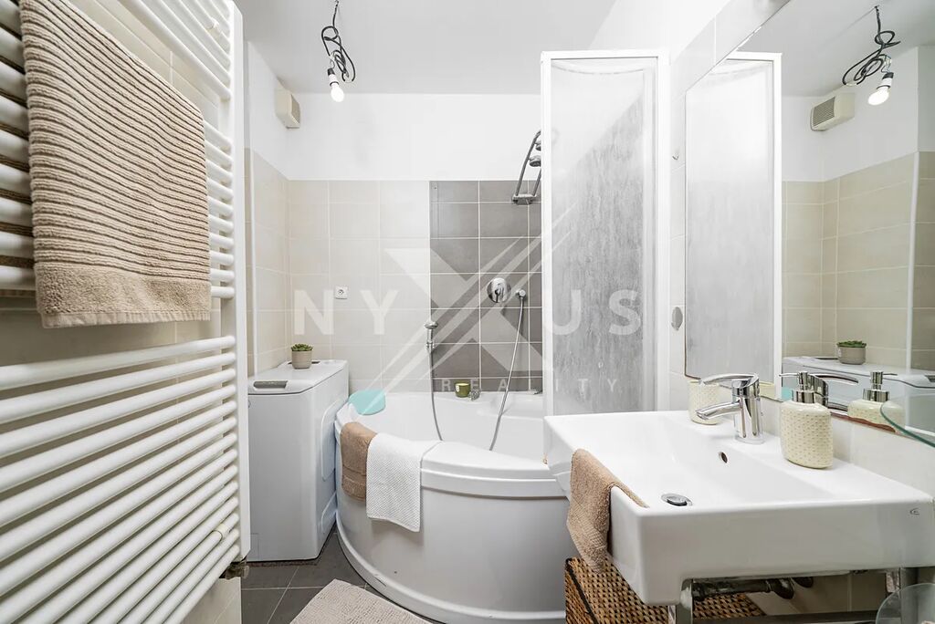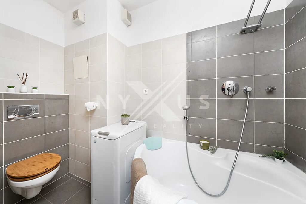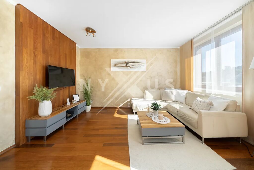 Jednou z největších výhod bytu je jeho umístění. Přímo před domem je zastávka MHD, odkud se dostanete za 7 minut přímým spojem na stanici metra Budějovická. Cca 450 m od domu je také tramvajová zastávka, ze které se dostanete pohodlně za pár minut do centra Prahy.