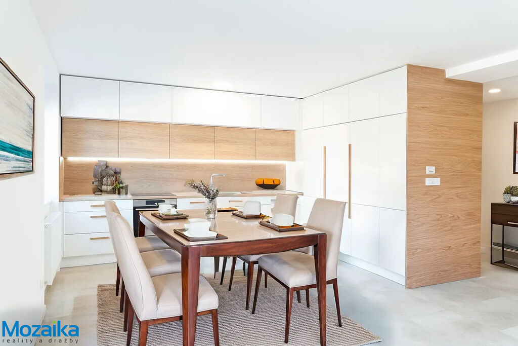 Vstoupíte do světlého a vzdušného bytu, který prošel náročnou celkovou rekonstrukcí. Interiér je navržen s důrazem na funkčnost a moderní styl bydlení. K dispozici máte moderní kuchyňskou linku vybavenou vestavnými spotřebiči ( lednice, mrazák, indukční varná deska, trouba, odsavač par, myčka nádobí) která potěší každého, kdo rád vaří. Díky vestavným šatním skříním na chodbě budete mít dostatek úložného prostoru pro všechny své věci a byt zůstane vždy uklizený a přehledný. V této skříni je také pračka a kotel ústředního topení.