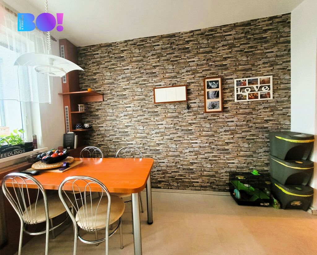 Interiér tvoří prostorný obývací pokoj, velká kuchyň s kuchyňskou linkou včetně vestavných spotřebičů (plynový sporák, elektrická trouba, digestoř, lednice, myčka). Dále jsou zde dva pokoje, koupelna s rohovou vanou a samostatné WC.