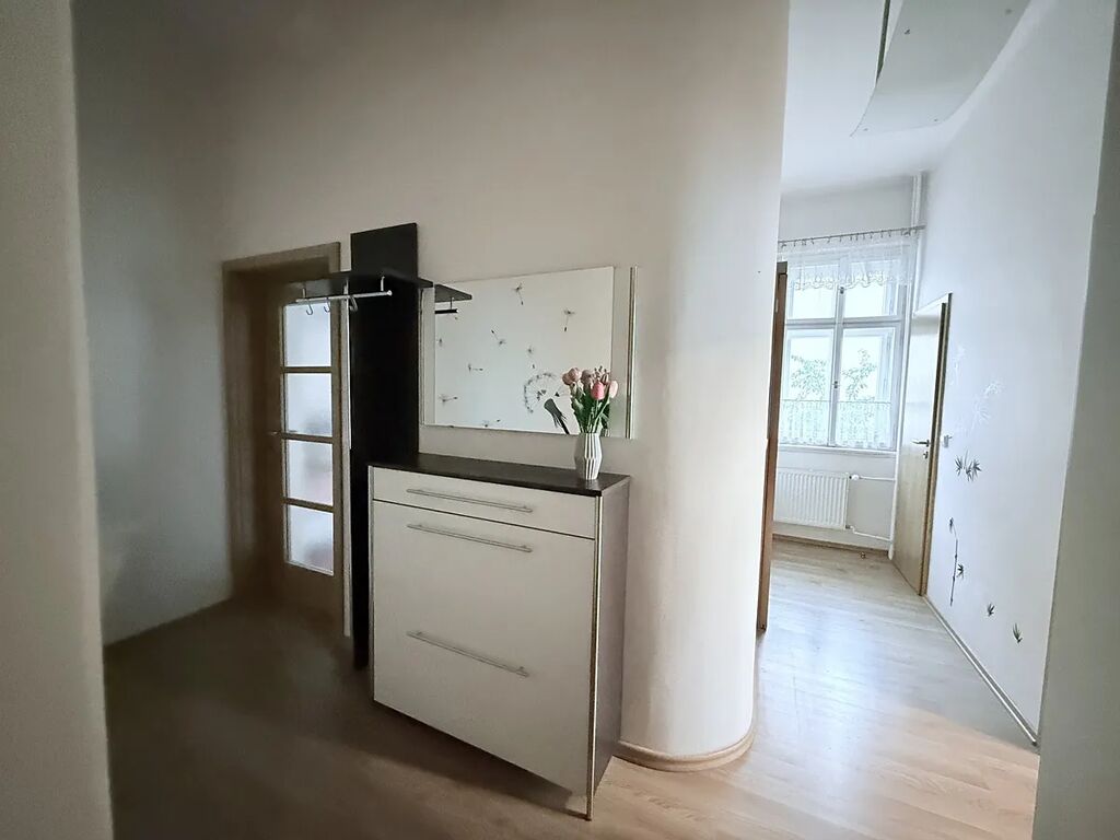 Byt je částečně vybavený a díky své dispozici poskytuje dostatek prostoru a pohodlí. K dispozici je velký samostatný obývací pokoj, ložnice s vlastní koupelnou, samostatná toaleta, menší kuchyňka a prostorná chodba. V kuchyni je nová lednička a nová menší pračka. Součástí vybavení jsou také vestavěné skříně, které zajišťují dostatek úložných prostor. Byt je ideální pro pár, který hledá klidné bydlení v dobré dostupnosti do centra.