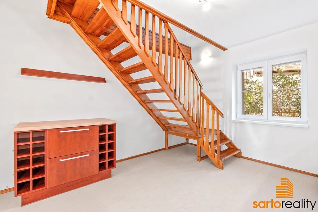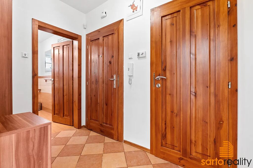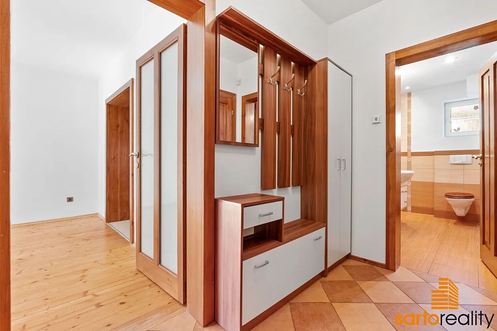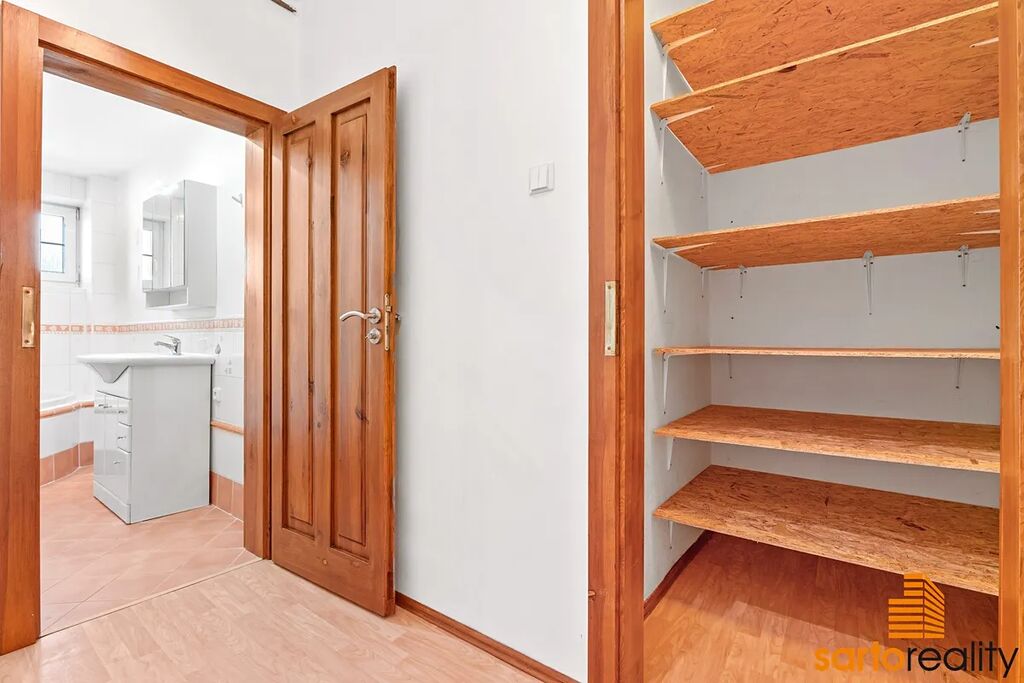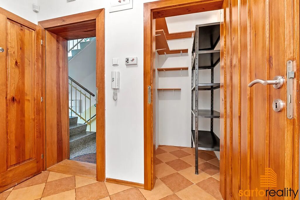 komora a dále galerie s vestavěnou skříní. K bytu též náleží dva velké sklepy/suterén. místnosti, kde je dostatek prostoru pro uložení např. veškerého sportovního vybavení (kola, lyže, paddleboardy atd.), dále třeba zimních pneu, ovoce a zeleniny a další.
