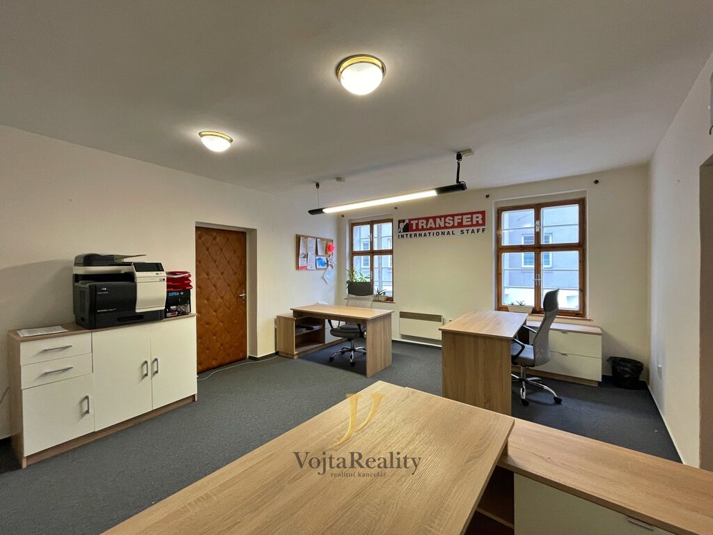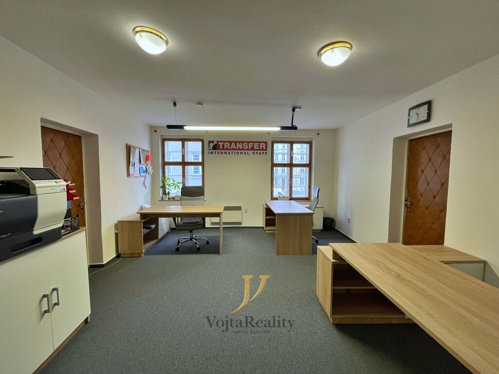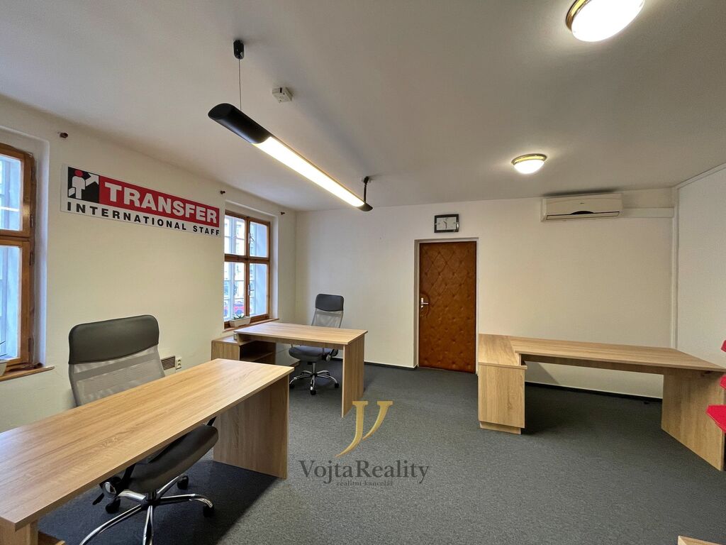 K pronájmu nabízíme členité kancelářské prostory s rozlohou 56m² v historickém centru města Olomouce. Prostory se nachází v prvním patře cihlové budovy v ulici Riegrova a pronajímají se vybavené kancelářským nábytkem. K dispozici jsou tři průchozí kanceláře, kdy jedna disponuje kuchyňkou. O vytápění objektu se starají elektrické přímotopy. Ve dvou kancelářích je umístěna klimatizační jednotka. Další kuchyňka a tablety se nacházejí ve společných částech domu. Majitel nepožaduje vratnou kauci. Provize RK činí jeden nájem + DPH. K dispozici od 1.11. 2025. V případě zájmu o bližší informace nebo sjednání prohlídky kontaktujte, prosím, makléře.