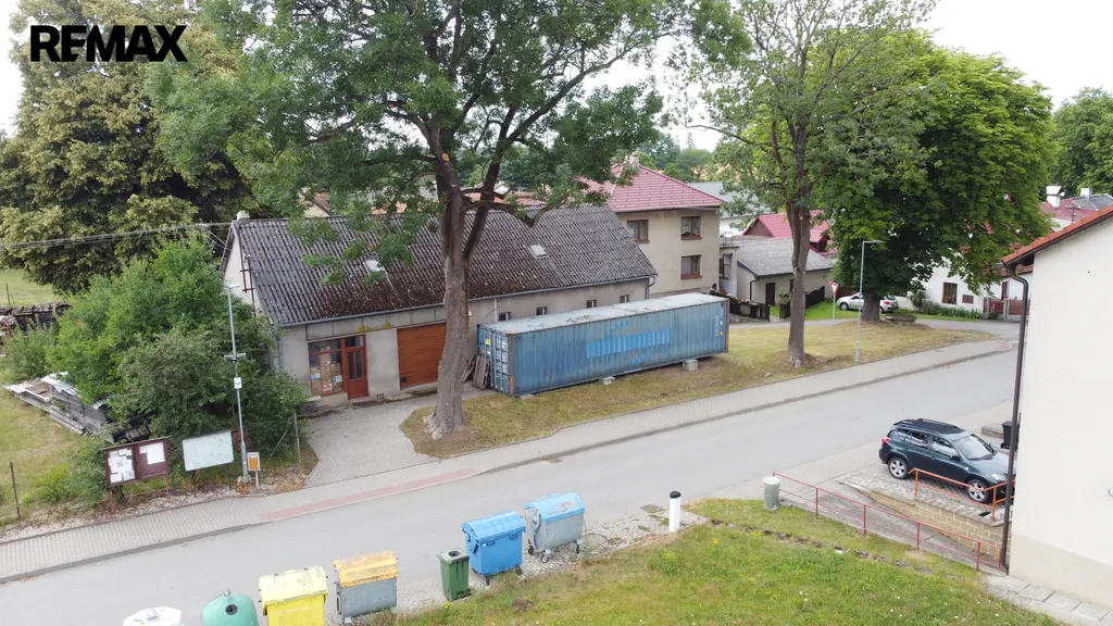 Jedná se o prodej objektu občanské vybavenosti v minulosti sloužícího jako prodejna potravin, následně upraveného na dílnu a sklady. Objekt je tvořen hlavním prostorem 45,63m2 s el. ovládanými vjezdovými vraty šíře 2,55 a výšky 2,51m2, dále skladem 24,60m2, spojovací chodbou 11,90m2, skladem 20m2, menším skladem 4,84m2, koupelnou 4,77m2, místností 2,26m2, WC 1,08m2, nákladovou rampou v zadní části 7,00m2 a skladem z rampy 5,83m2. Stropy mají výšku 2,91m2. Objekt je napojen na obecní vodovod, střešní krytinu tvoří vlnitý eternit. Okna jsou v části nova Euro, ostatní původní dřevěná. Podlahy tvoří beton v částech s dlažbou. K objektu je zpracován projekt pro rodinný dům 4+kk s příslušenstvím bez využití obytného podkroví. Cena zahrnuje kontejner před objektem o rozměru 12x2,5m. Pro více informací volejte makléře nabídky.