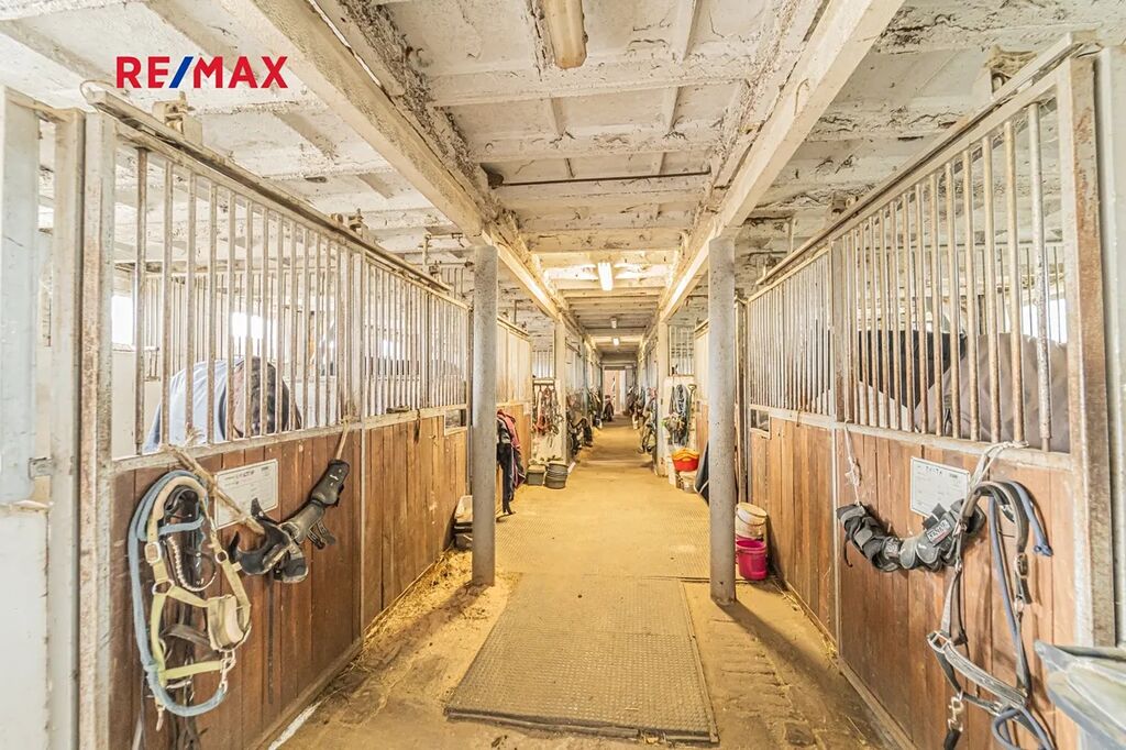 Nabízíme exkluzivně k prodeji jedinečný jezdecký areál o celkové výměře 12 480 m² v obci Chlumín, okres Mělník. Tento komplex je ideální pro milovníky koní i rodiny hledající klidné bydlení s přírodou na dosah Prahy a Mělníka. Areál zahrnuje 26 boxů pro ustájení koní, krytou jezdeckou halu s moderní ocelovou konstrukcí, prostorné kolbiště s pískovým povrchem, kruhovku, pronajaté travnaté výběhy o rozloze cca 1,2 ha s elektrickým ohradníkem, dřevěným přístřeškem a napáječkou.