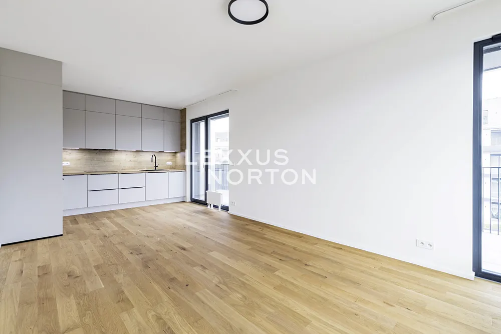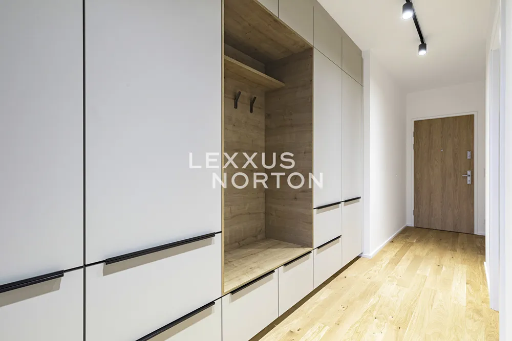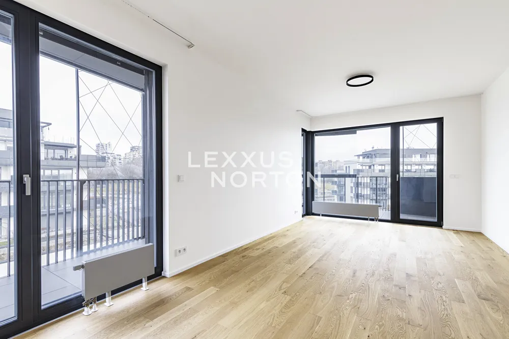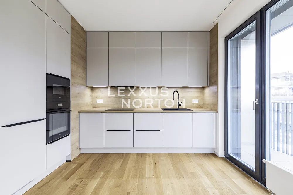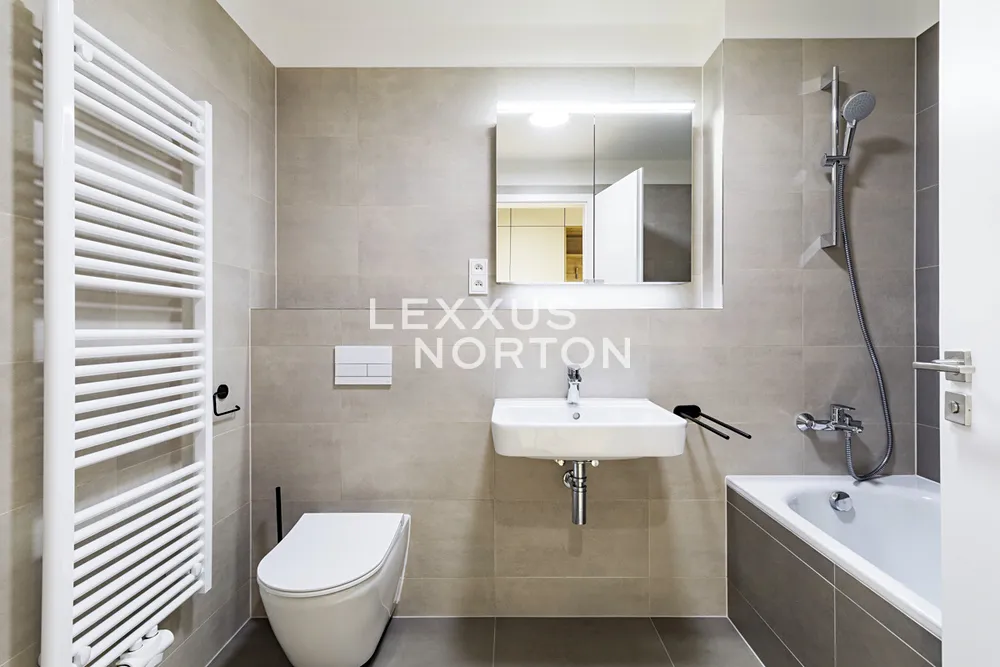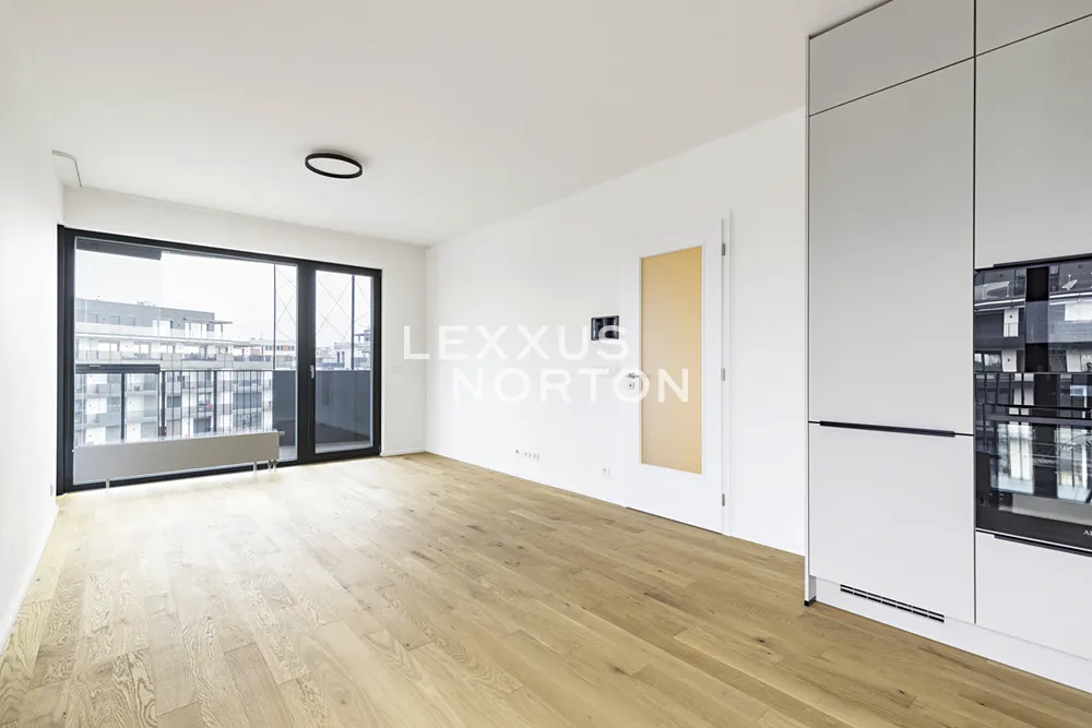 Tento světlý a prostorný byt k pronájmu nabízí komfortní a moderní bydlení. Při vstupu vás přivítá vstupní chodba s vestavěnou skříní, která poskytuje dostatek úložného prostoru. Hlavní obytný prostor zahrnuje obývací pokoj propojený s plně vybaveným kuchyňským koutem s přímým vstupem na terasu, ideální pro relaxaci a venkovní posezení. Kuchyň je zařízena moderními spotřebiči (indukční deska, parní trouba, lednice, mrazák, mikrovlnná trouba a myčka nádobí). Byt disponuje jednou ložnicí, která také nabízí přímý vstup na terasu, která zajišťuje dostatek světla. Koupelna je vybavena vanou a toaletou. Navíc je byt vybaven chytrou domácností.