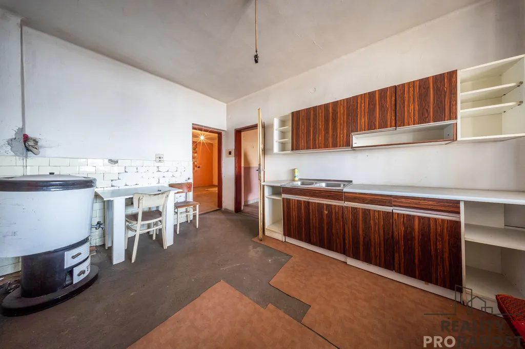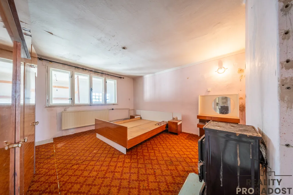 Dům z obou stran přiléhá k sousedním domům, je prostorný, má dvě nadzemní podlaží, je podsklepený, připojený na všechny IS ( elektřina, plyn, kanalizace, obecní vodovod) + studna, celková výměra pozemku je 432 m2, šířka cca 12 m a stáří domu je 60 let.