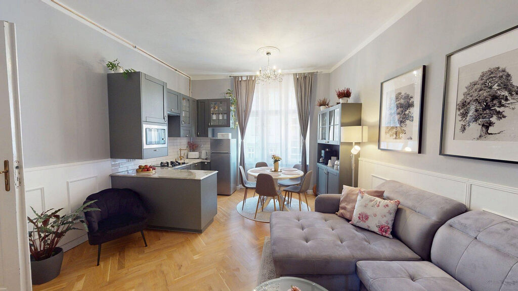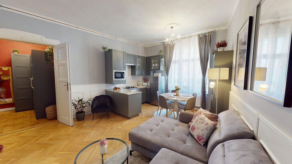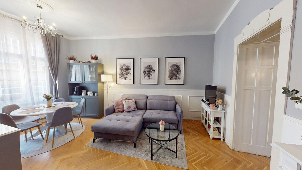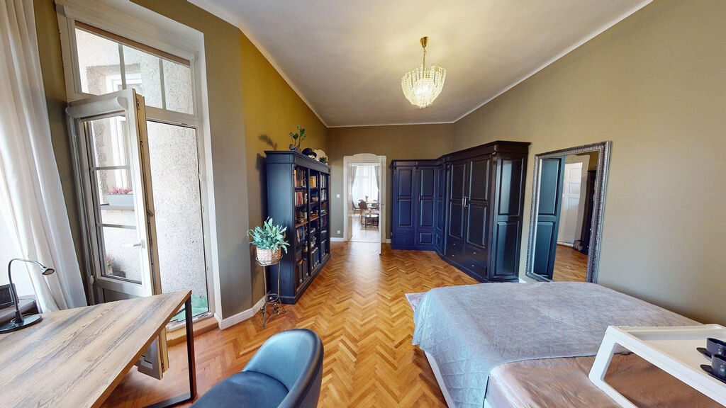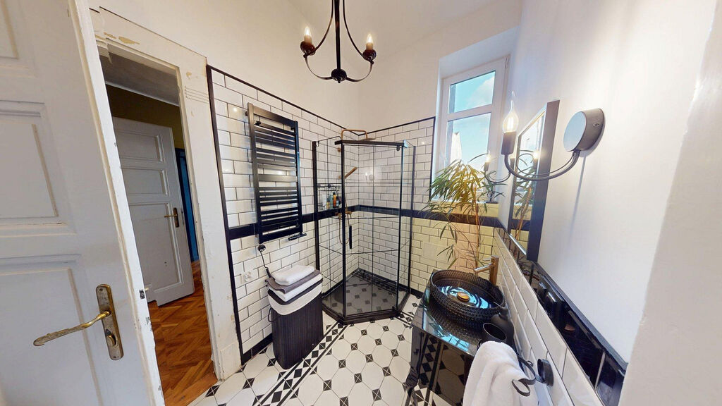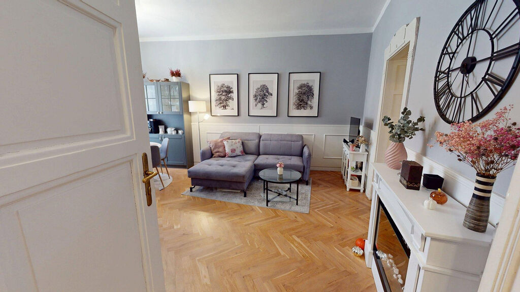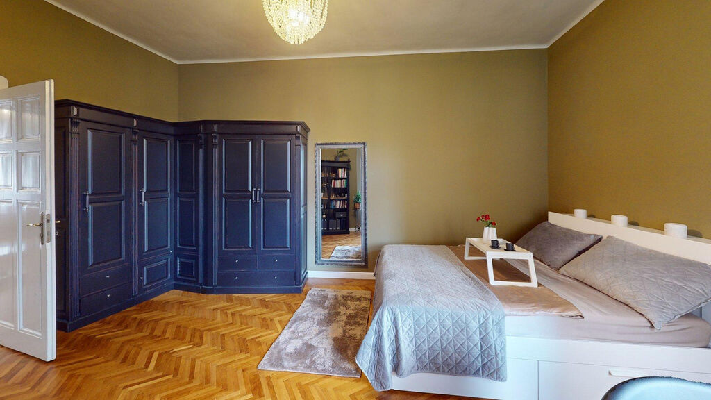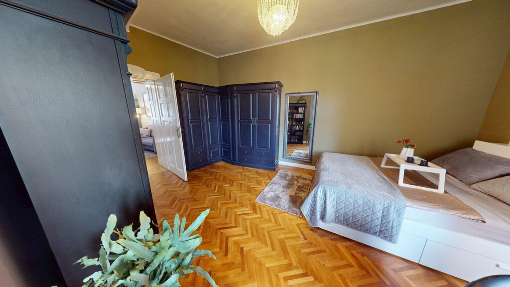 Tento byt Vás okamžitě okouzlí svou jedinečnou atmosférou noblesní dispozice navozující pocit bydlení na zámku. Majitelka při rekonstrukci kladla velký důraz na zachování historického rázu interiéru a genia loci cihlového domu. Každý detail byl promyšlen - od renovovaných dřevěných podlah a parket, přes výběr nábytku až po doplňky. Vše bylo citlivě sladěno tak, aby byt působil harmonicky a zůstal věrný duchu starého měšťanského domu v centru Ostravy.