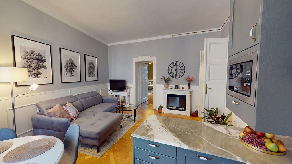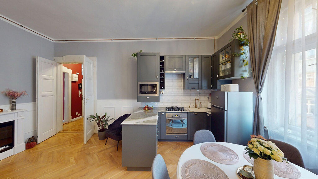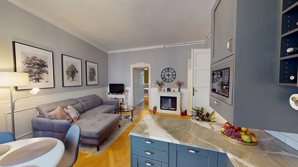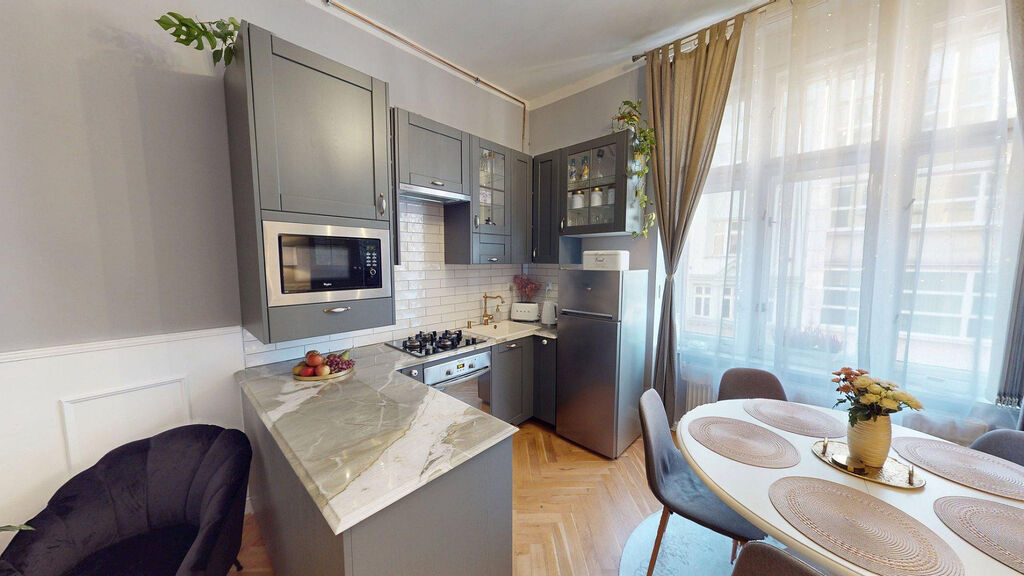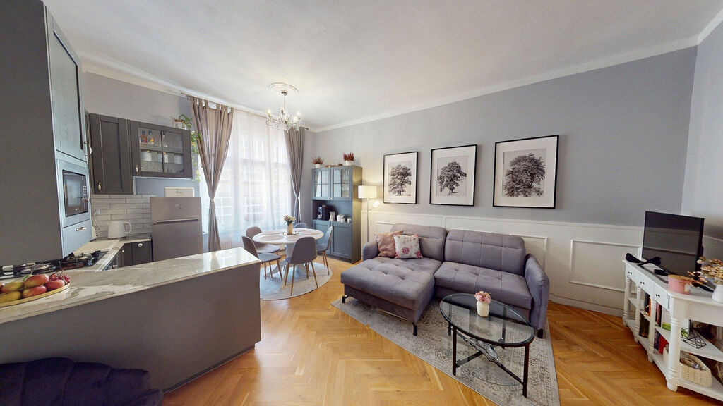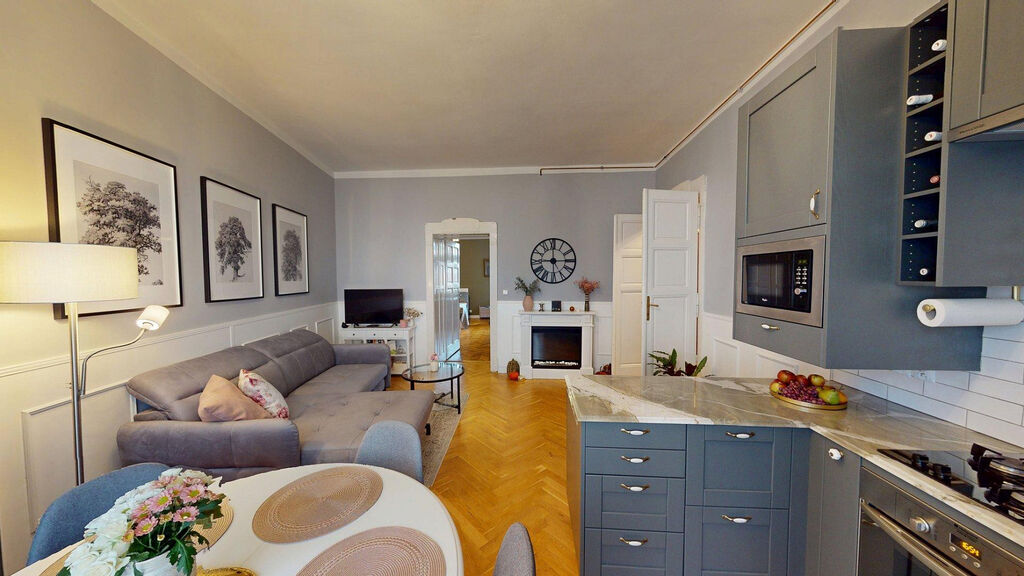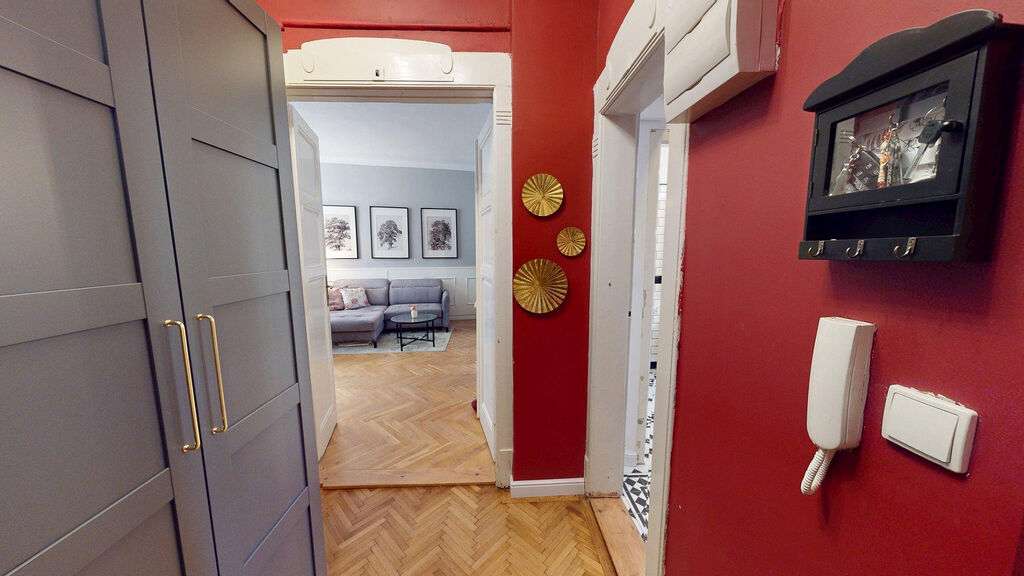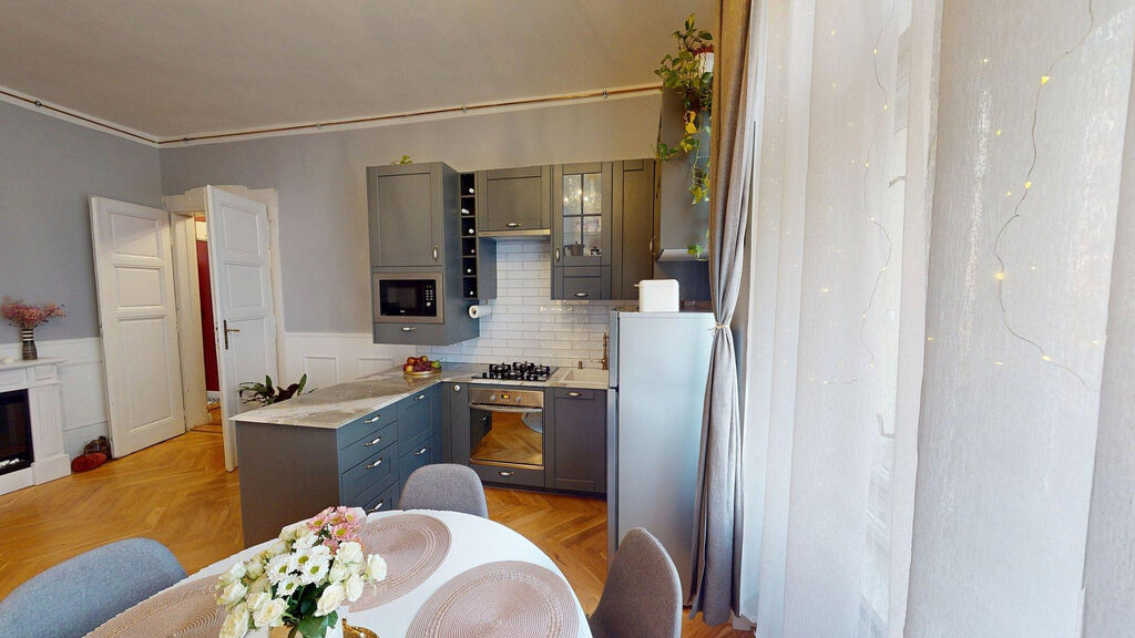 Tento byt Vás okamžitě okouzlí svou jedinečnou atmosférou noblesní dispozice navozující pocit bydlení na zámku. Majitelka při rekonstrukci kladla velký důraz na zachování historického rázu interiéru a genia loci cihlového domu. Každý detail byl promyšlen - od renovovaných dřevěných podlah a parket, přes výběr nábytku až po doplňky. Vše bylo citlivě sladěno tak, aby byt působil harmonicky a zůstal věrný duchu starého měšťanského domu v centru Ostravy.