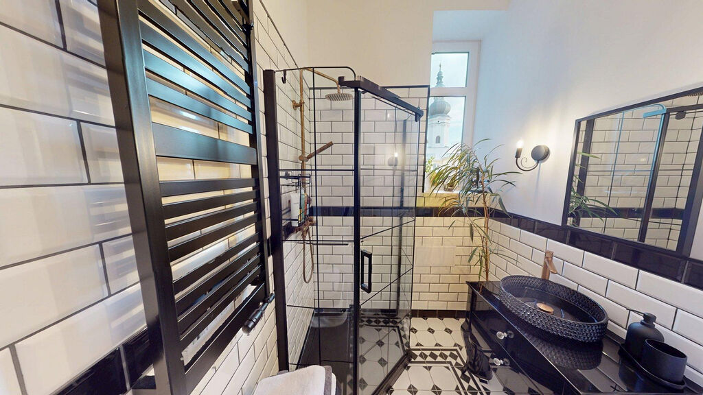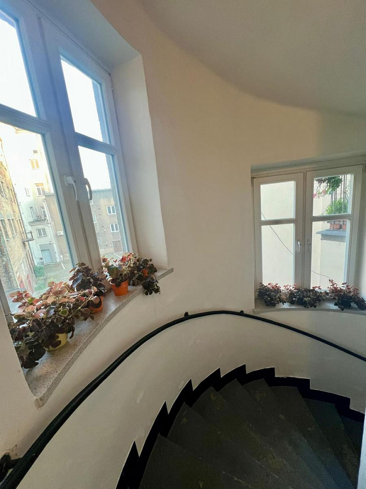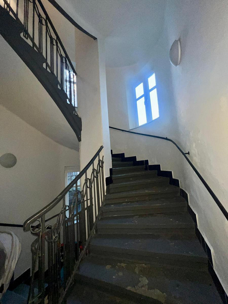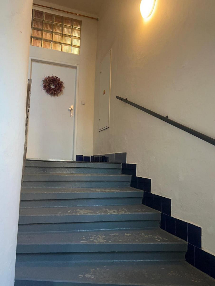 Součástí bytu je i malý balkon orientovaný do klidného dvora, ideální pro ranní kávu nebo odpočinek po práci. Přístup vede po stylovém schodišti, které samo o sobě dotváří kouzlo celé nemovitosti.