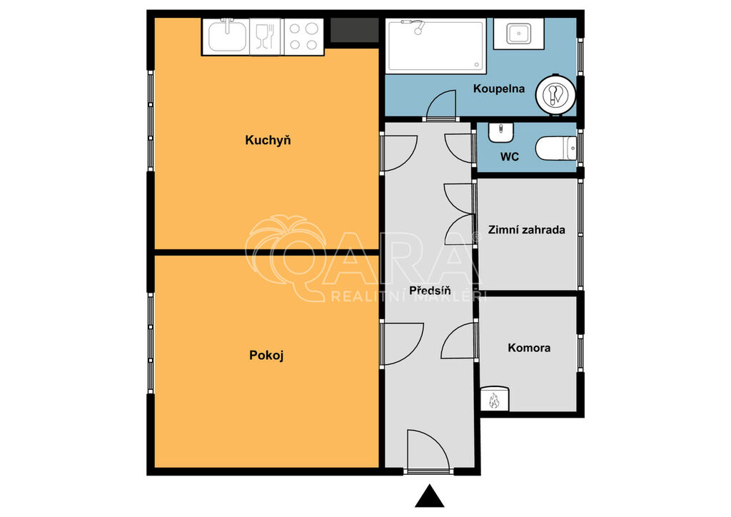 Dispozice: kuchyň s obývacím pokojem, ložnice, komora, zimní zahrada/ šatna, koupelna se sprchovým koutem, toaleta zvlášť, sklep