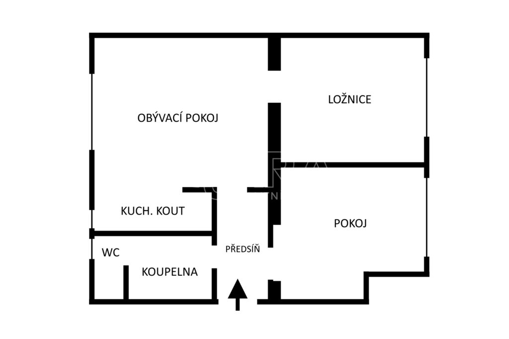 Dále oceníte jeho šikovnou dispozici, kdy obývací část s kuchyňským koutem je orientovaná na jihozápad do klidného parčíku a obě ložnice pak směřují na pro spaní vhodný severovýchod.
