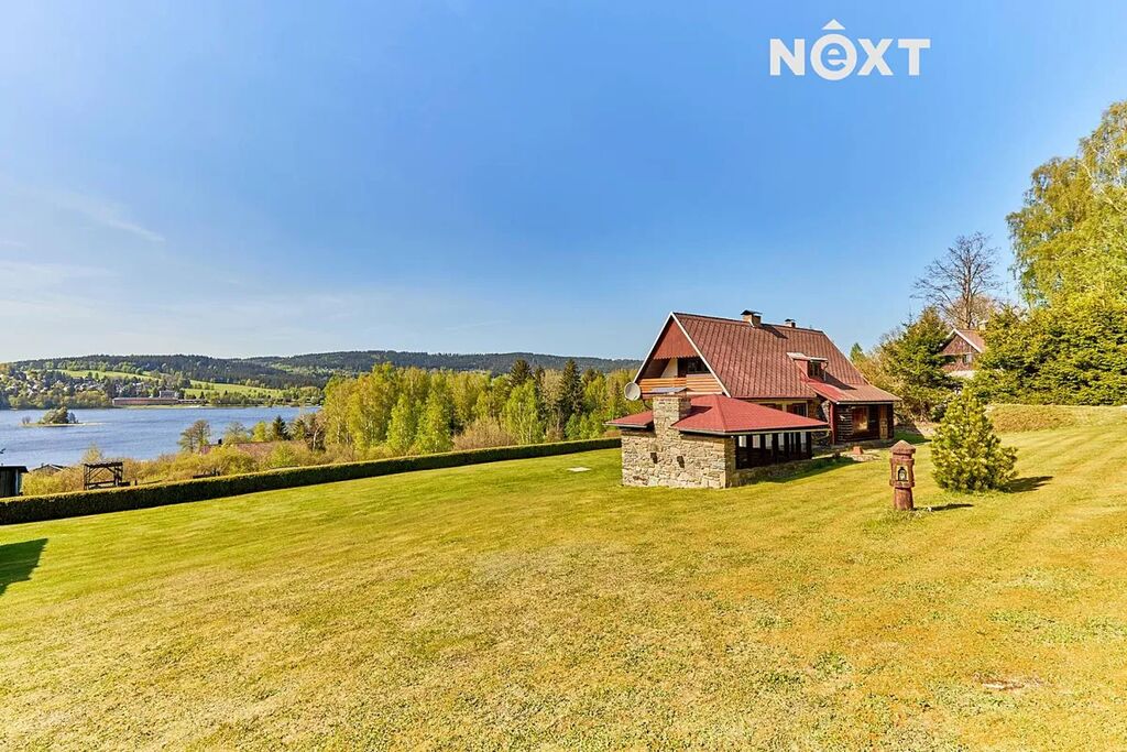 Exkluzivně nabízím k prodeji nádhernou chalupu na ještě nádhernějším místě s výhledem na jezero Lipno. Chalupa je s péčí švýcarských hodinářů budována od konce 80. let včetně kompletního vybavení. Na zastavěné ploše 93m2 se vypíná unikát o dispozici 41 a obytné ploše 141m2. Na pozemcích o celkové výměře 9378m2 se dále nachází jezírko s přirozeným přítokem s okolních lesů, rafinovaně zabudovaná dvougaráž do sklonu terénu a nádherný kamenný altán pro grilování s přáteli a opět krásným výhledem na jezero a Králičí ostrov. Obrovským potenciálem je pozemek 9378m2, který je z velké části zastavitelný dalšími stavbami. Přístup na koncový pozemek je z obecní komunikace. Jedinečná chalupa je vytápěná vybudovaným krbem v obývacím pokoji. Doporučuji osobní prohlídku tohoto krásného místa. Pro komunikaci uvádějte evidenční číslo zakázky N105173.