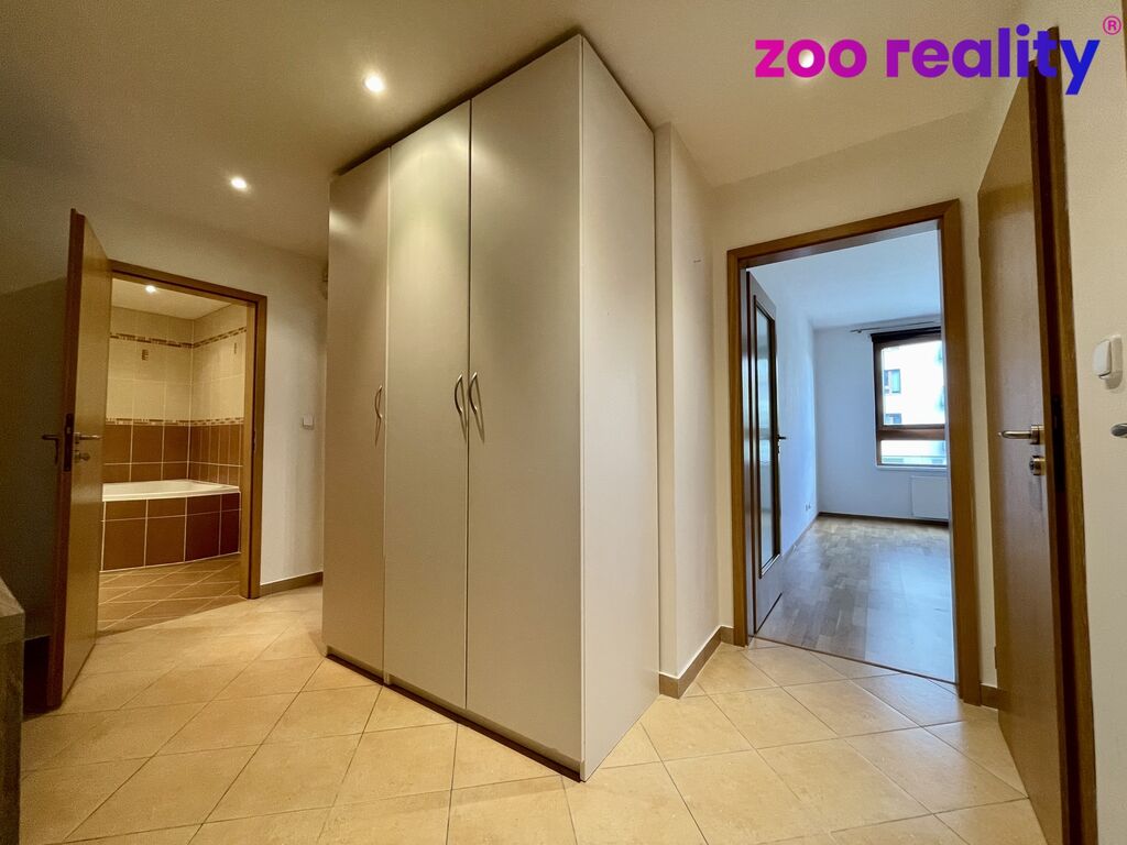 Dispozice bytu se skládá z prostorného obývacího pokoje s kuchyňským koutem (25,8m2), jehož prosklené francouzské dveře vedou na terasu a do vlastní zahrady o rozloze 56 m², což poskytuje skvělé možnosti pro relaxaci a odpočinek v soukromí. Dále byt zahrnuje ložnici (14,4m2), koupelnu s pračkou a samostatné WC. Nechybí zde ani úložný prostor v podobě komory, což je praktickým řešením pro uskladnění potřebných věcí. Bytový dům má moderní výtah.