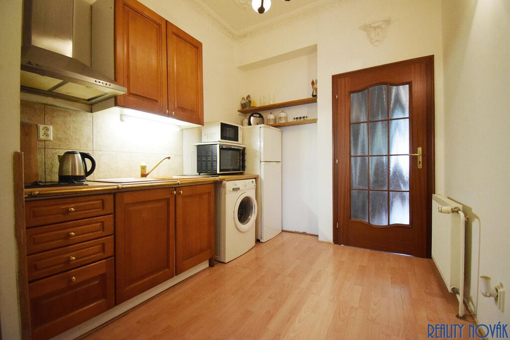 Nabízíme k pronájmu velmi pěkný, prostorný a originálně řešený byt o velikosti 2+1, 74 m², který se nachází ve 3. patře cihlového domu na rozhraní Vinohrad a Žižkova v ulici Blodkova, v srdci jedné z nejoblíbenějších pražských rezidenčních lokalit. Byt má velmi příjemnou a naprosto originální atmosféru a pronajímá se včetně zařízení (viz. foto). Kromě obývacího pokoje, ložnice a kuchyně má byt také menší samostatnou šatnu a jednu další místnost, která byla v minulosti přizpůsobena a využívána jako temná komora pro vyvolávání fotografií (umyvadlo v vodou, dlažba a obklady - viz. foto). Kromě zmíněné fotokomory ji však v současnosti lze využívat např. také jako pracovnu. Okna z ložnice jsou orientována do vnitrobloku, okna obývacího pokoje jsou pak do ulice Blodkova. Byt má vlastní plynový kotel, který zajišťuje vytápění a ohřev vody. Příslušenství bytu tvoří sklep umístěný v suterénu domu, k dispozici je také velmi příjemná společná zahrada v klidném vnitrobloku. Kompletní občanská vybavenost a skvělá dopravní dostupnost jsou v této části Prahy samozřejmostí. Byt je ihned volný, pro bližší informace a prohlídky kontaktujte makléře.