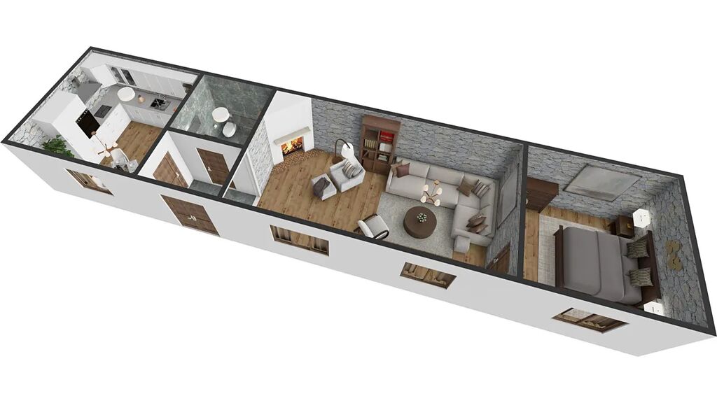 Pozemek o výměře 1059 m2 nabízí několik možností využití ať už k bydlení, rekreaci nebo podnikání. Stávající dům o podlahové ploše 80 m2 byl důkladně vyklizen a připraven k rekonstrukci ve venkovském stylu s přiznanými kamennými zdmi a stropními dřevěnými trámy. Podlahová plocha může být využita jako prostorné 2+1 nebo 3+kk s kuchyňským koutem umístěným v hlavní obytné místnosti. V domě jsou celkem tři komíny, z toho jeden zaslepený. V hlavním prostoru se přímo nabízí komín využít k instalaci krbových kamen. Nemovitosti bylo v minulosti přiděleno číslo evidenční z důvodu nemožnosti vlastnit více nemovitostí k bydlení, po dokončení rekonstrukce lze zažádat o číslo popisné.