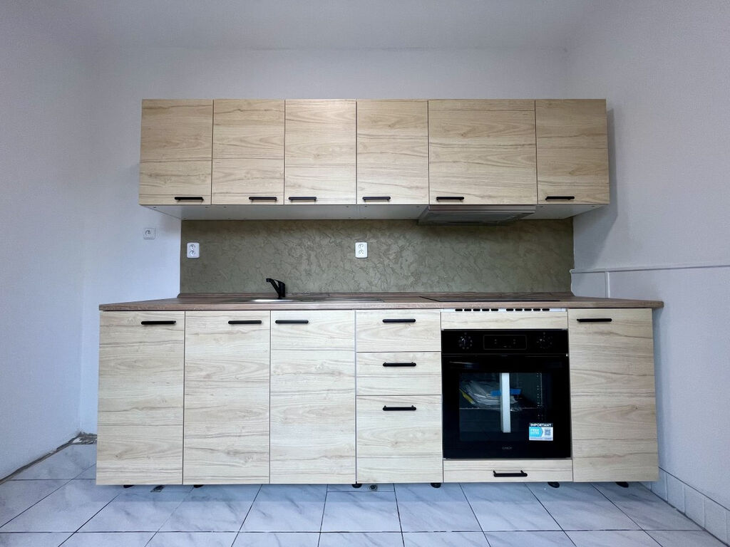 Kuchyně disponuje spoustou úložného prostoru a novými spotřebiči jako je elektrický sporák, elektrická trouba a digestoř.