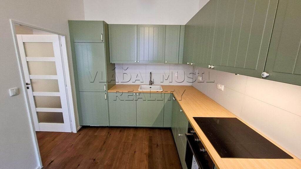 Nabízíme k pronájmu velmi pěkný nově kompletně zrekonstruovaný byt 1+1 v Praze 8 (Libeň), ulice Novákových - kousek od stanice metra "Palmovka". Byt o celkové rozloze 41 m² se nachází ve druhém patře cihlového domu. Tvoří ho vstupní předsíň, pokoj, kuchyň a koupelna s toaletou. V bytě byla právě dokončena nákladná kompletní rekonstrukce = vše je nové – rozvody, okna, plovoucí podlahy a dlažba, omítky, interiérové i vstupní dveře, koupelna se sprchovým koutem a toaletou a další. Nad koupelnou je velký úložný prostor. Teplou vodu zajišťuje bojler, vytápění přímotopy. Nové je také veškeré vybavení bytu. Nová kuchyňská linka je vybavena varnou deskou, el. multifunkční troubou, digestoří, vestavnou myčkou nádobí, velkou lednicí s mrazákem a pračkou. V koupelně je velké umyvadlo se skříňkou, zrcadlo s osvětlením, sprchový kout s posuvnými dveřmi a toaleta. V celém bytě je osvětlení.