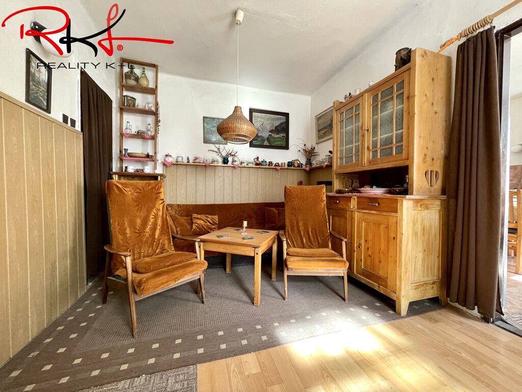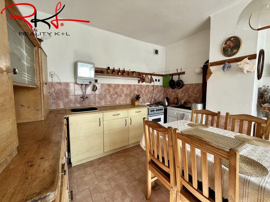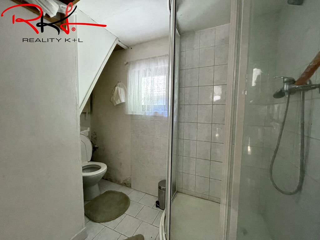 Dispozice: Vstupní chodbou se dostaneme do obývací místnosti, kde najdeme kamna na tuhá paliva, které jsou velmi příjemnou záležitostí třeba v zimním období. Dále je zde vstup do koupelny se sprchovým koutem, na toaletu, komora pro uložení potravin, vstup do kuchyně odkud následuje vstup do ložnice. V patře domu se nachází další dvě místnosti výhledem do ulice a do dvora.