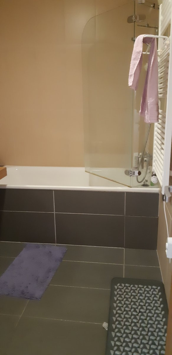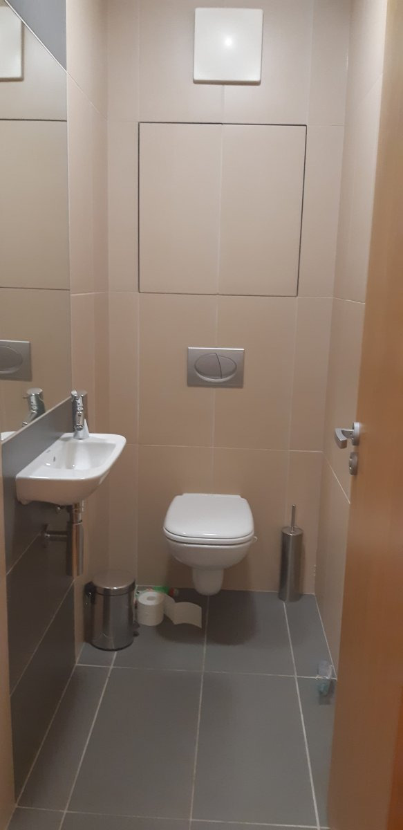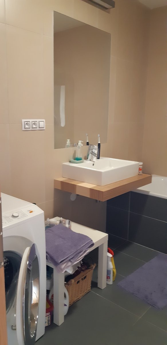 Koupelna je vybavena vanou, umyvadlem a pračkou, toaleta je samostatná.