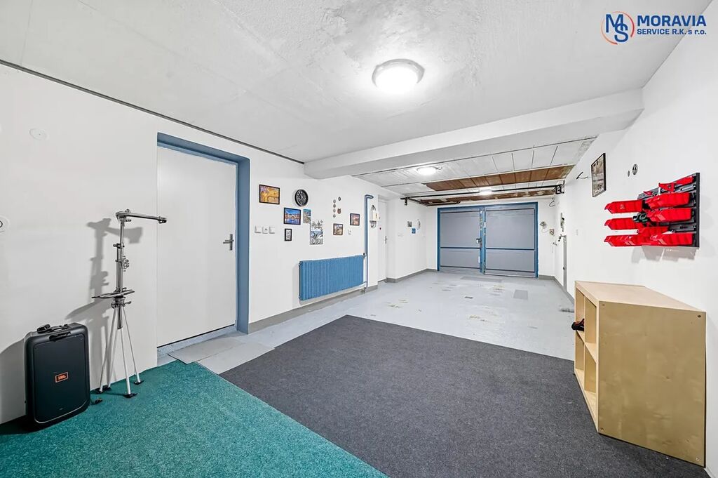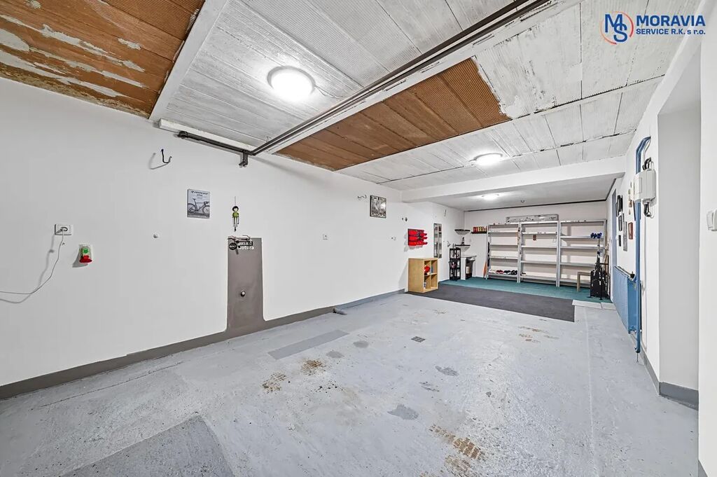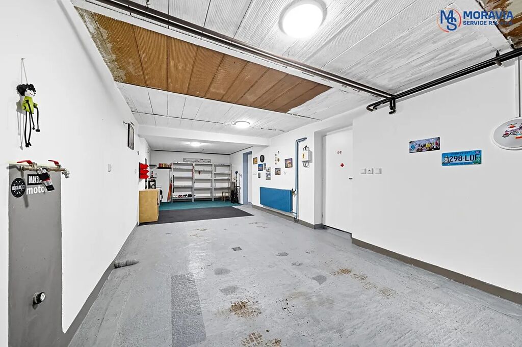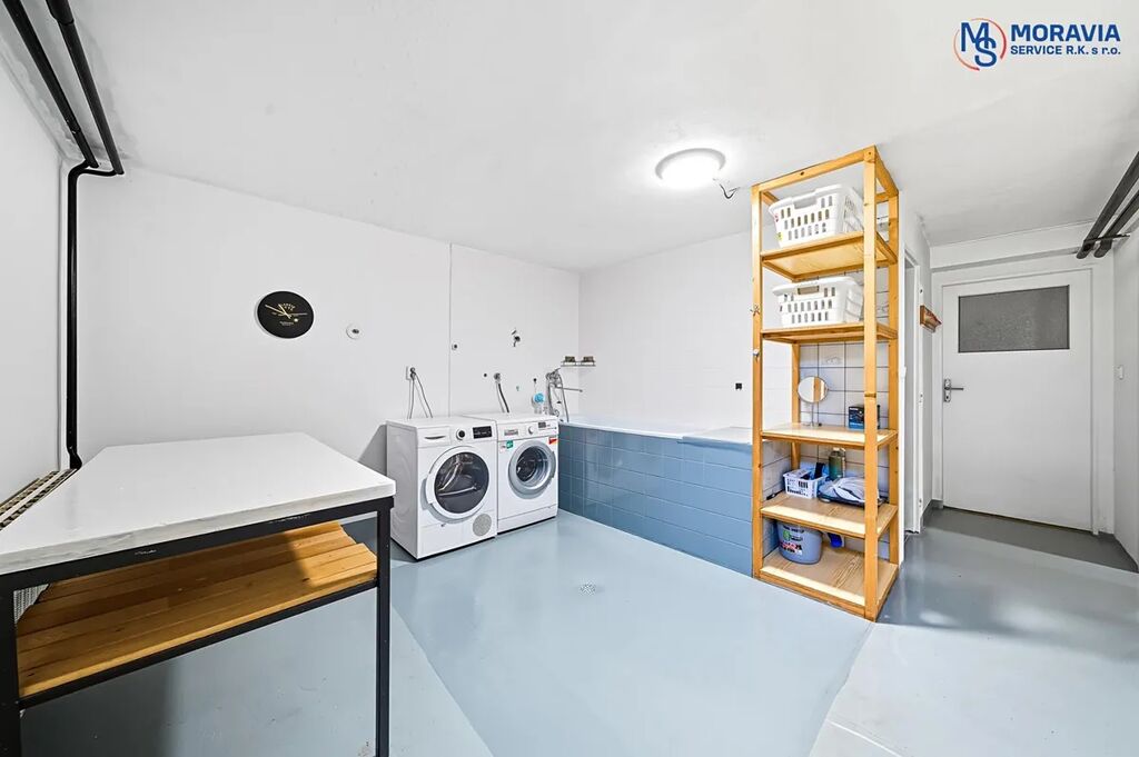 V suterénu domu je garáž pro dvě auta, kotelna a prádelna s vanou. Navíc je zde sklep a další místnost připravená pro instalaci sprchy a toalety.