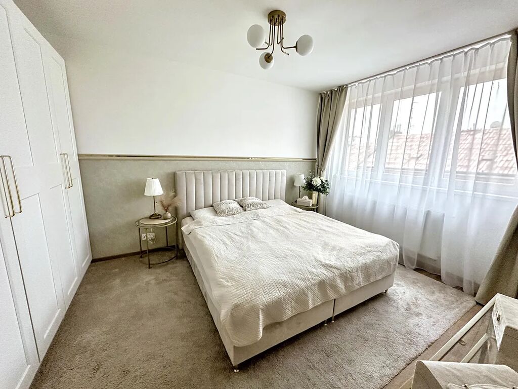 Prodej mezonetového bytu 4+kk o podlahové ploše 118,4 m² s terasou 14,3 m² orientovanou na severozápad.