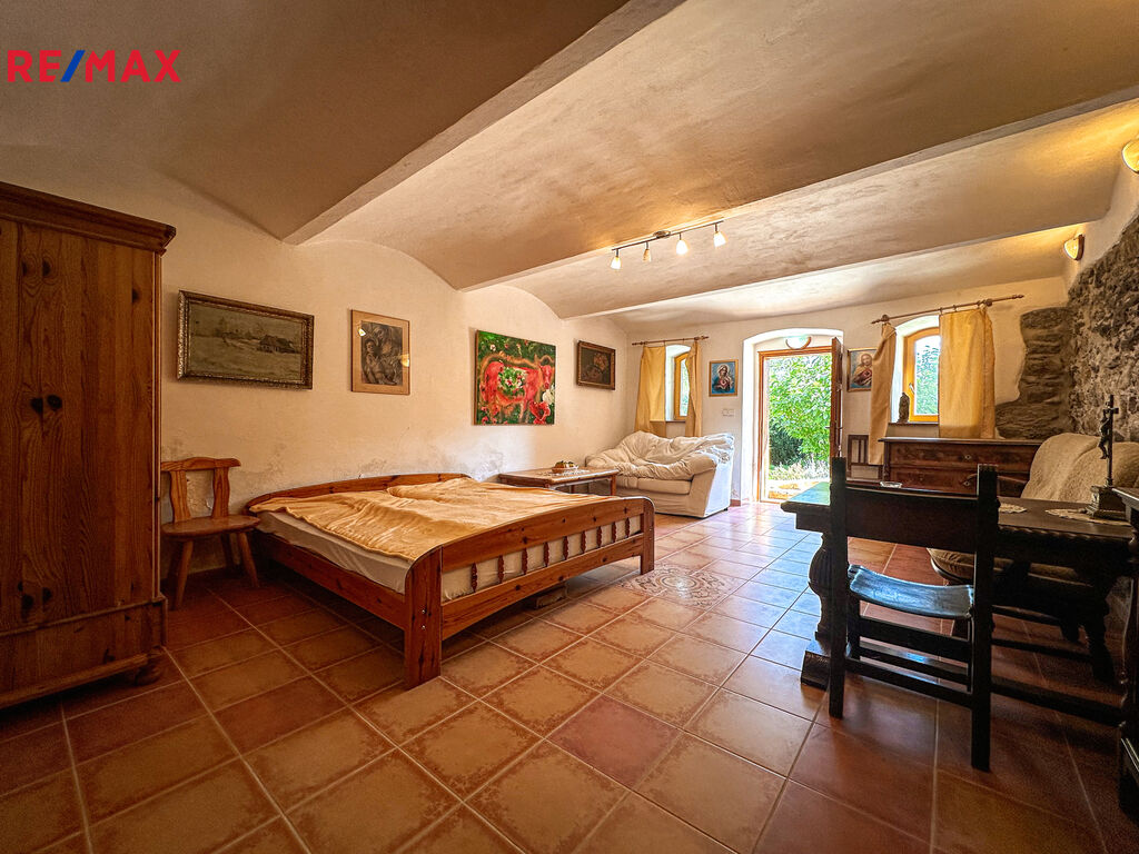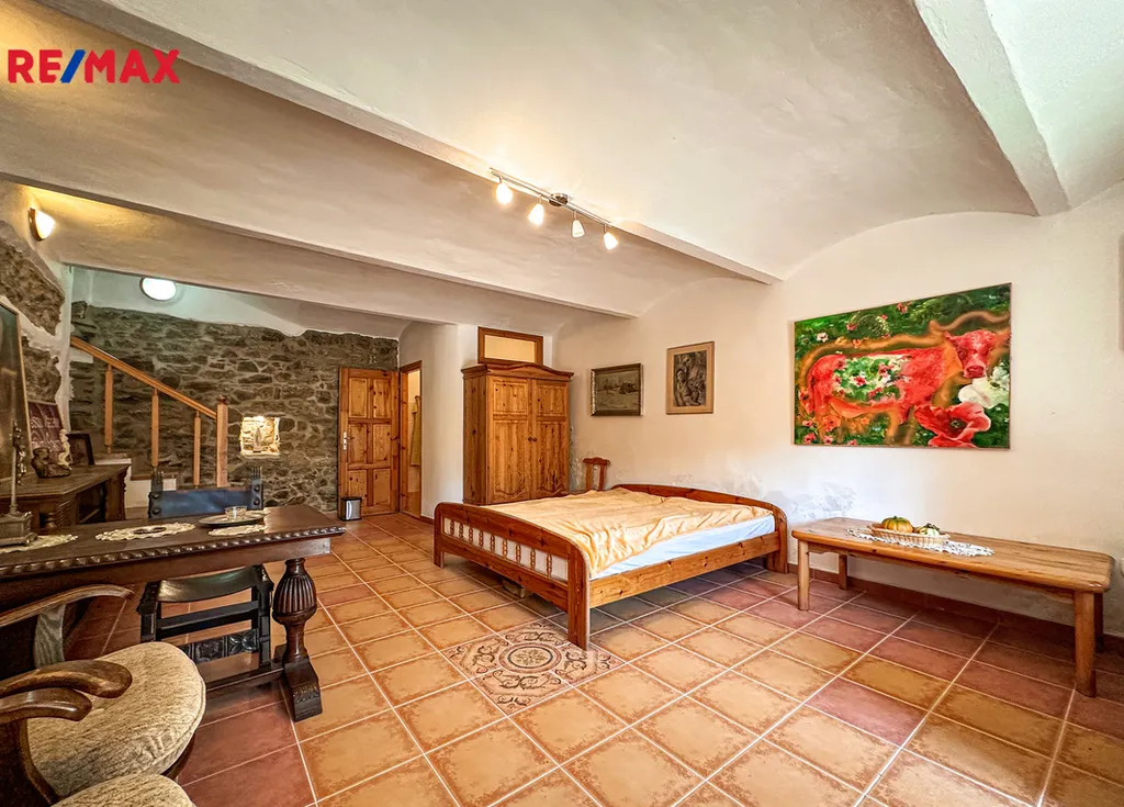 Stávající majitel obnovil a zařídil dům s uměleckým citem a originalitou. Prodej zahrnuje kompletní bohaté vnitřní zařízení včetně elektroniky, nábytku, velké kuchyně, a včetně nářadí a zemědělské techniky (sekačky, vertikutátor, traktor, zásoba dřeva a mnoho dalšího).
