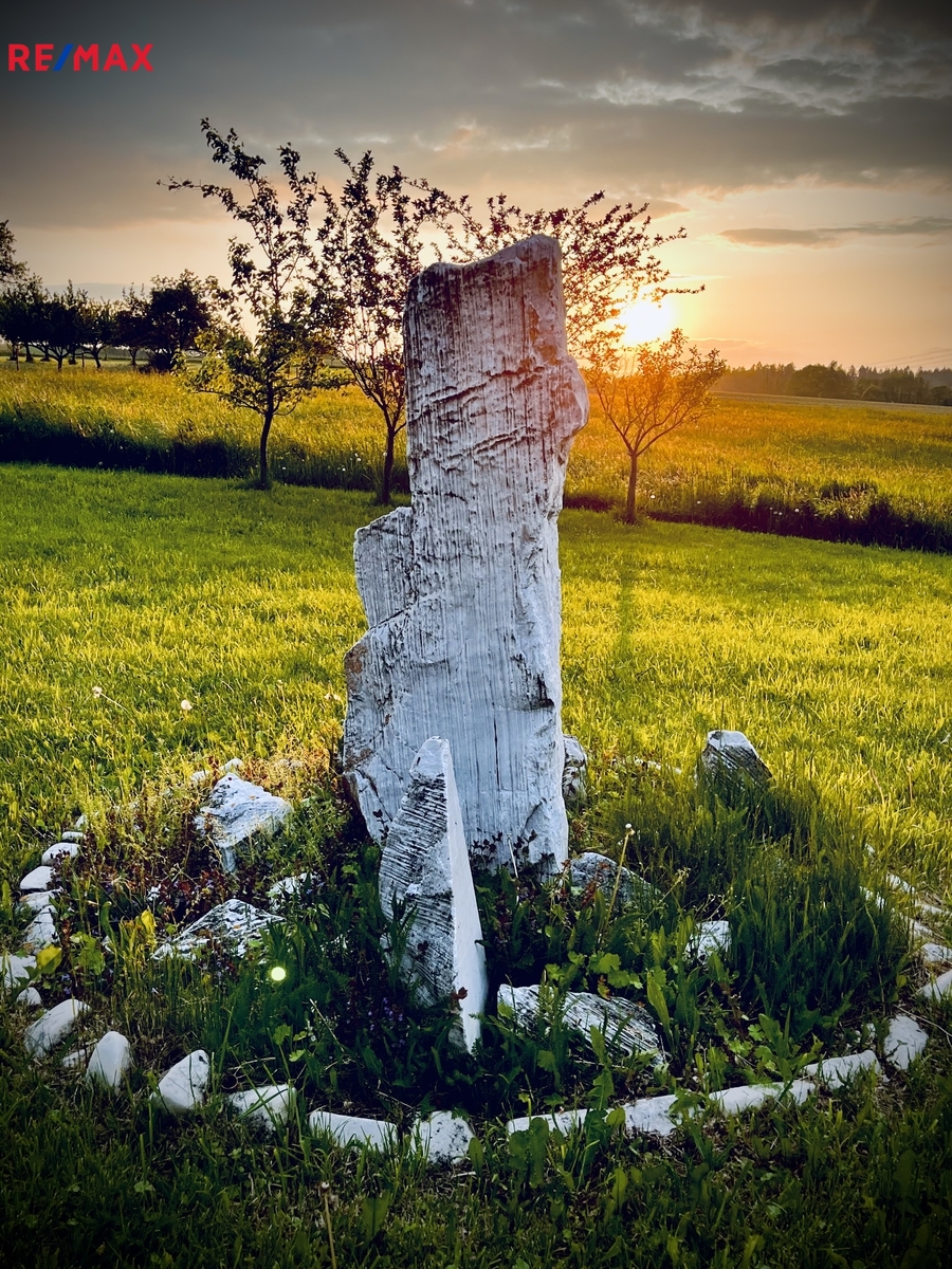 Dům má samostatnou polohu na kraji vesnice, ale není to samota. Třídílná zahrada skýtá větší množství romantických posezení, včetně altánu a dalších odpočinkových míst dle postupu denního světla, jako stvořených pro relaxaci a načerpání duševní pohody.