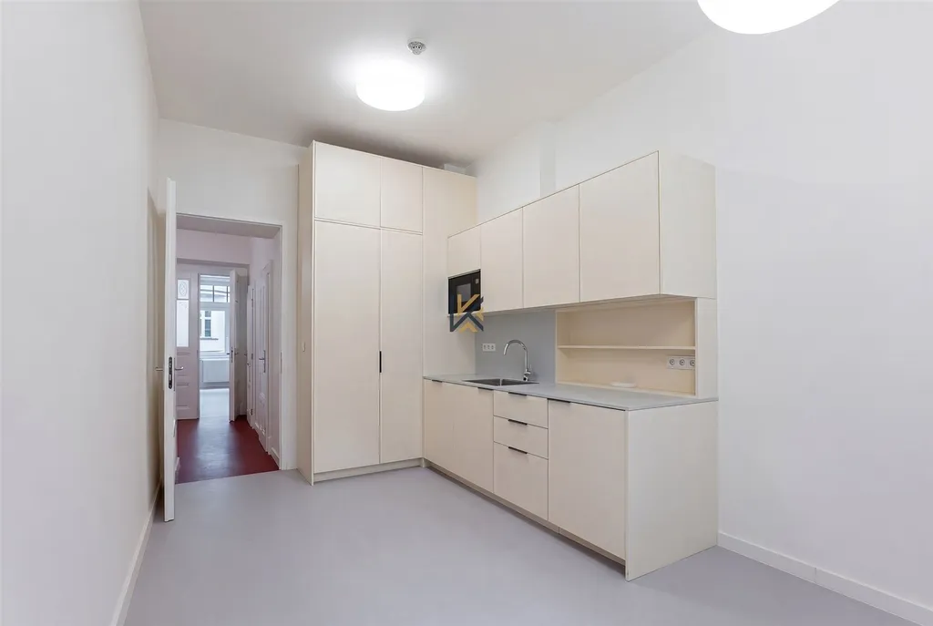 Neplatíte provizi! K pronájmu nabízíme samostatnou kancelářskou jednotku o výměře 100 m² s malým balkonem na Janáčkově nábřeží, Praha 5 (Smíchov). Prostory se nachází ve zvýšeném přízemí a zahrnují tři samostatné kanceláře, vstupní halu, vybavenou kuchyň, toaletu a sprchový kout. Kanceláře jsou po čerstvé renovaci, včetně nové výmalby, a jsou připravené k okamžitému stěhování. Vytápění a ohřev vody zajišťuje vlastní plynový kotel a nově je prostor napojen na optický kabel.
