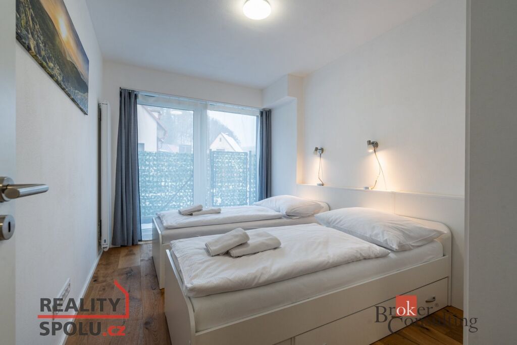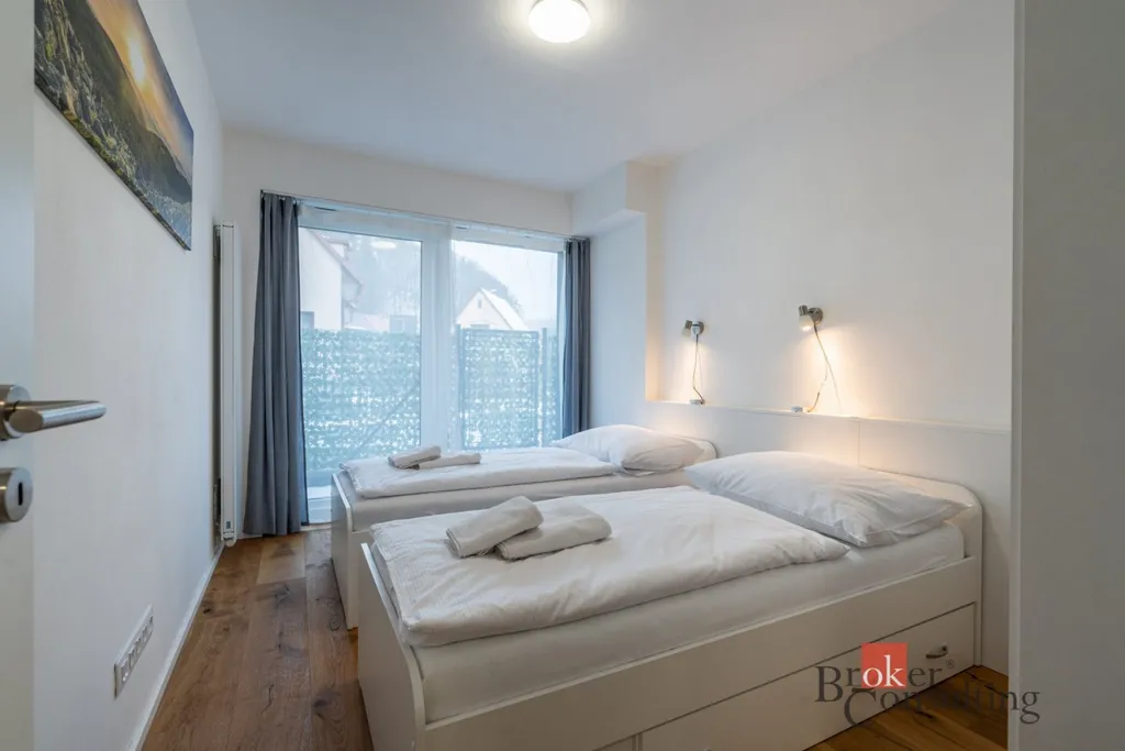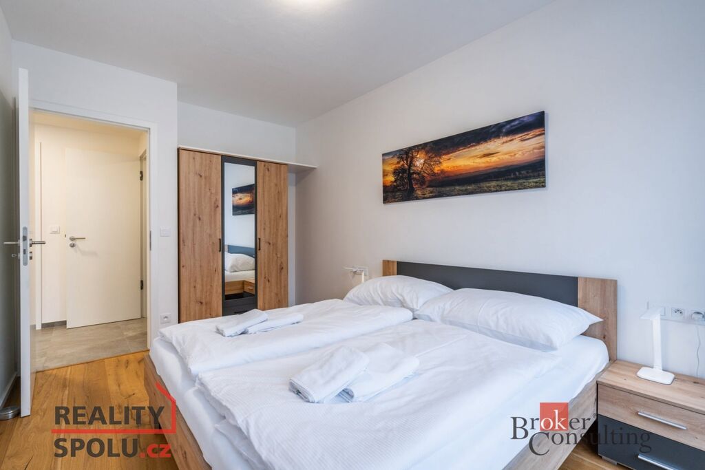 Kolaudace bytového domu proběhla v roce 2024. Byt je připraven k okamžitému předání. Dispozičně nabídne obývací pokoj s kuchyňským koutem, dvě samostatné ložnice. Koupelna disponuje walk in sprchou, samostatné WC. Všechna okna jsou připravena na osazení elektrických venkovních rolet na dálkové ovládání. V koupelně je vymezen prostor pro dokončení sauny případně je možné dobudovat vanu.