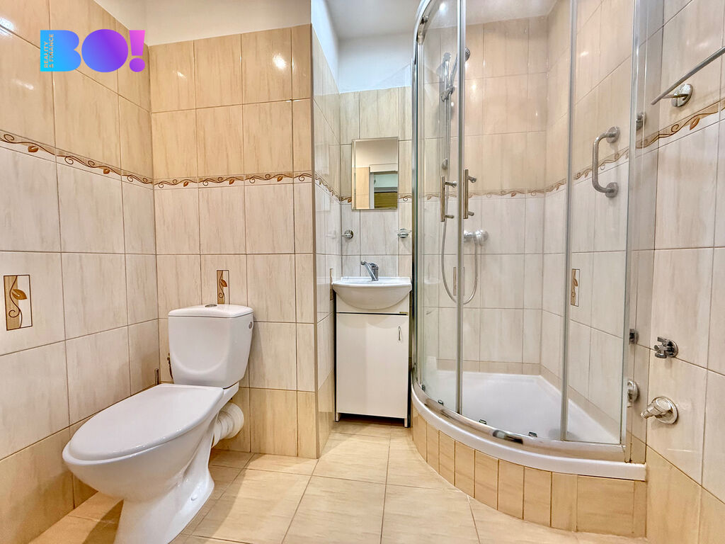 Interiér bytu je částečně zařízen a disponuje vstupní chodbou, kde je umístěna vestavná skříň na boty. Kuchyň je vybavena elektrickou troubou a dvěma plynovými hořáky. Prostor v koupelně nabízí sprchový kout a WC, včetně místa pro pračku. Pokoj je prostorný a obsahuje velkou skříň, což umožňuje dostatek úložného prostoru.