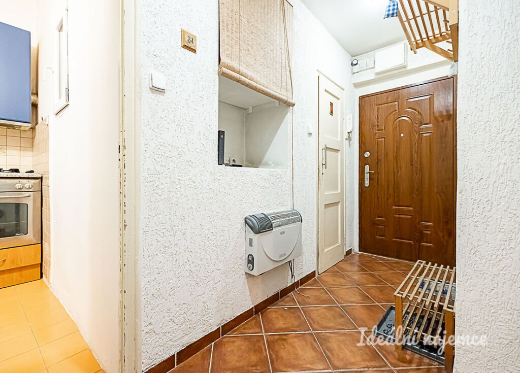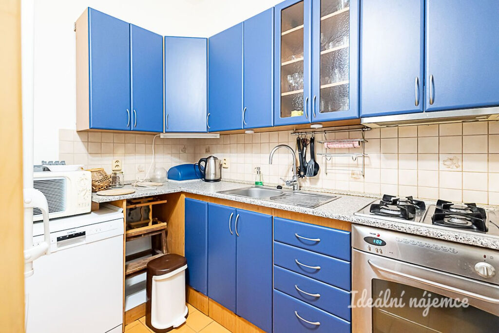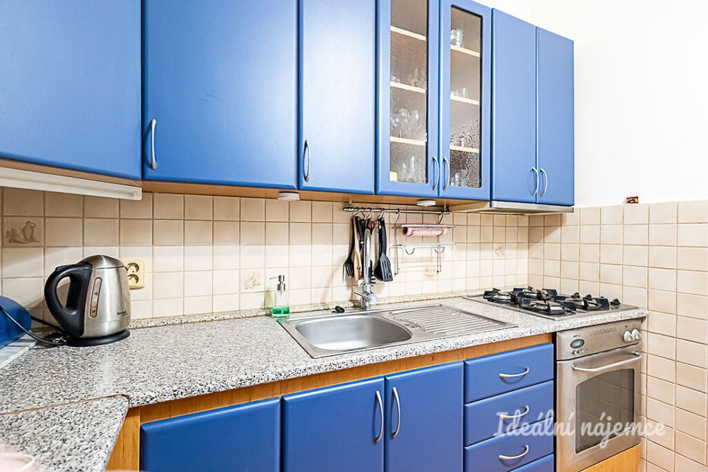Byt je částečně vybavený, takže si ho můžete dotvořit podle svých představ. Moderní kuchyňská linka je vybavena lednicí s mrazákem, elektrickou troubou, varnou deskou, digestoří a myčkou nádobí.