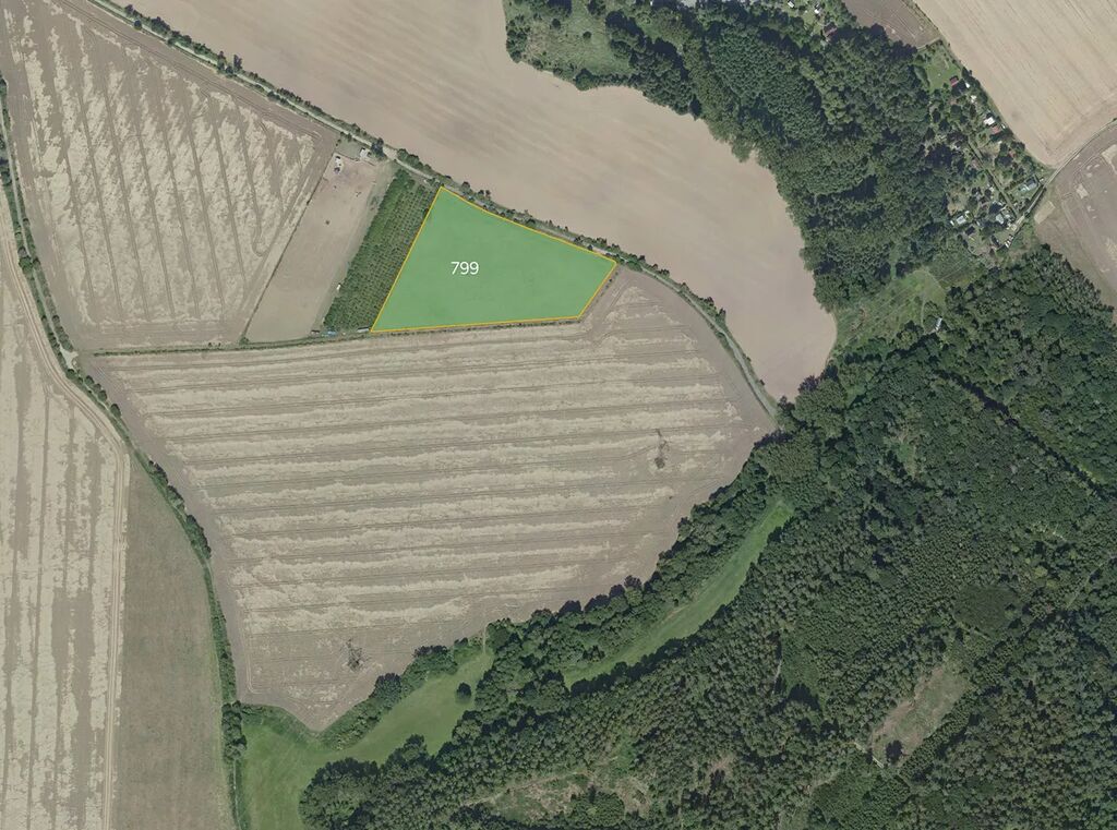 parc. č. 799 – orná půda, výměra celé parcely 18 255 m², výměra prodeje 13 691 m²