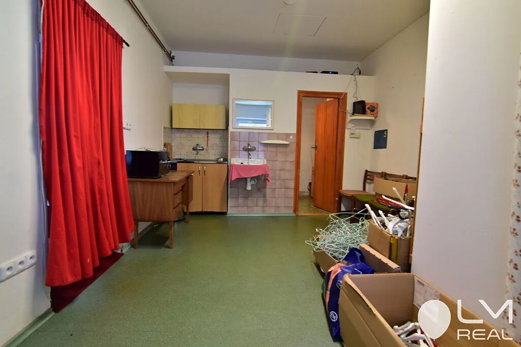 Stávající dispozice je vidět v přiloženém půdorysu: hlavní místnost, sociální zázemí, sklady, chodby.