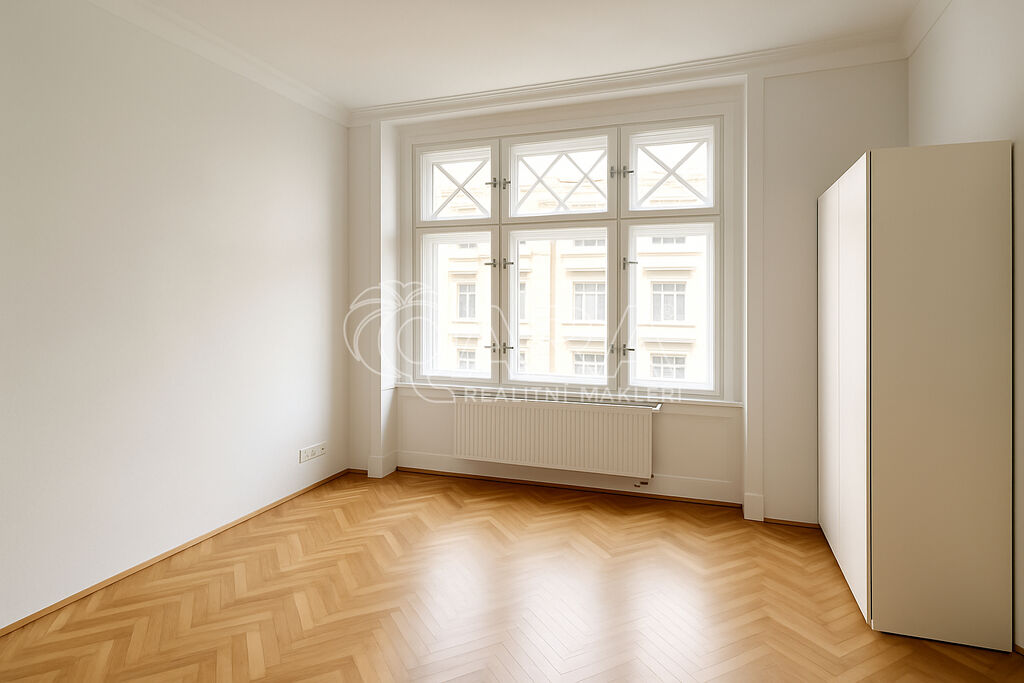 Nabízíme k dlouhodobému pronájmu nevybavený, prostorný byt / kancelář 4+1 (147 m²) s balkonem a velkým sklepem (20 m2) v prestižní lokalitě Královských Vinohrad.